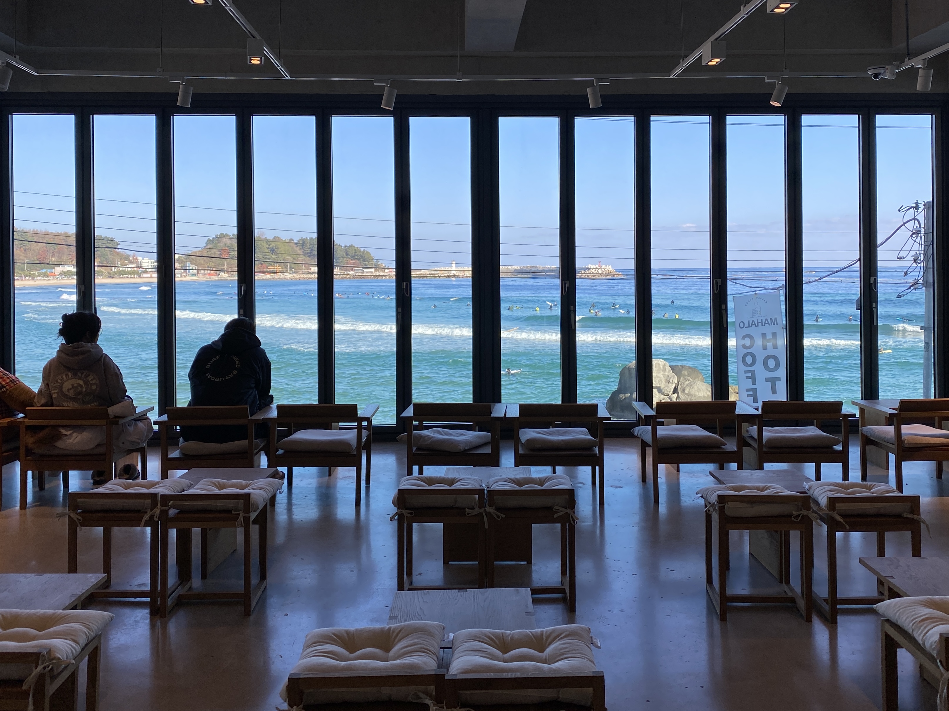 죽도 해수욕장이 다보이는 카페를 찾았습니다.