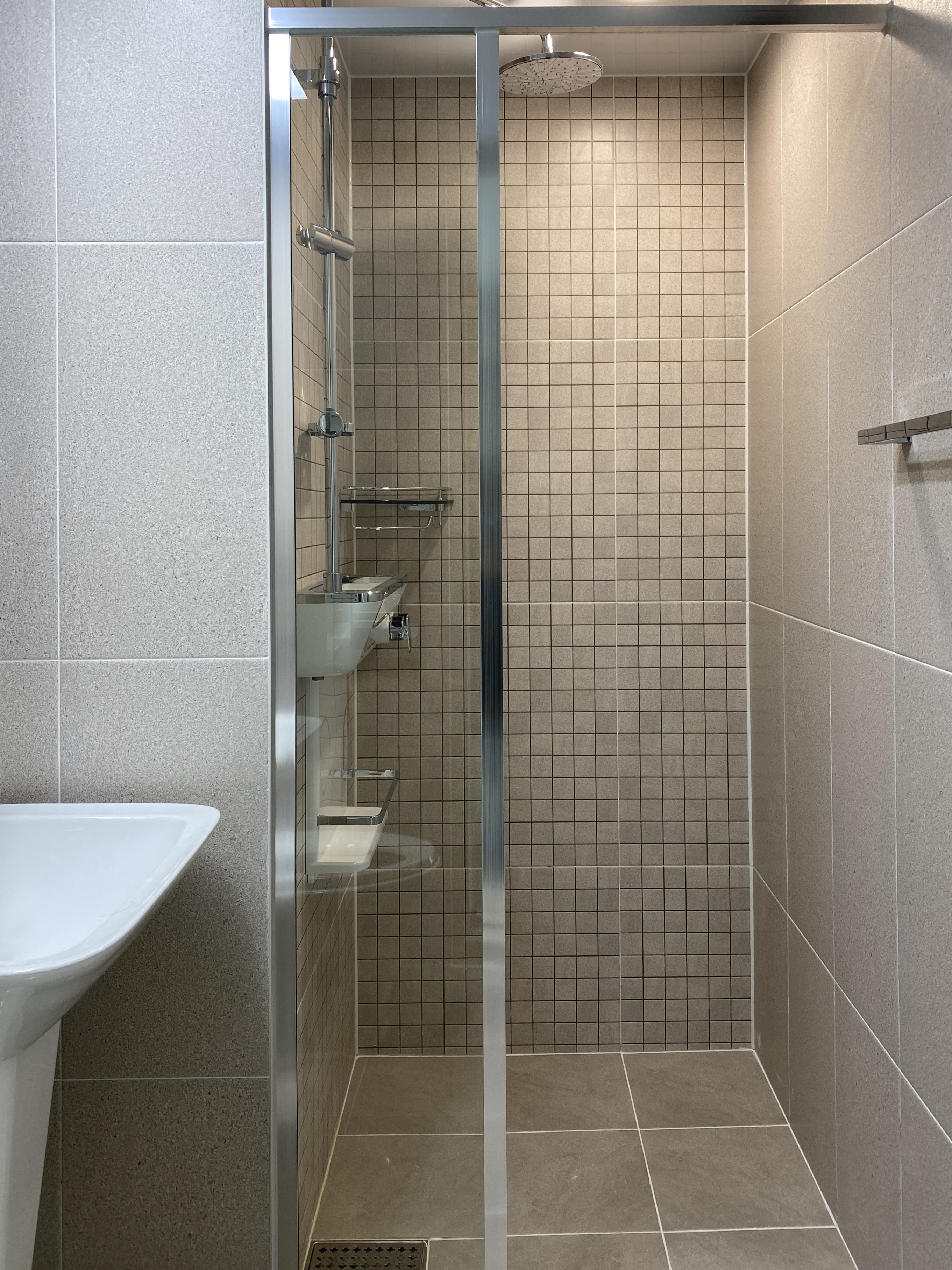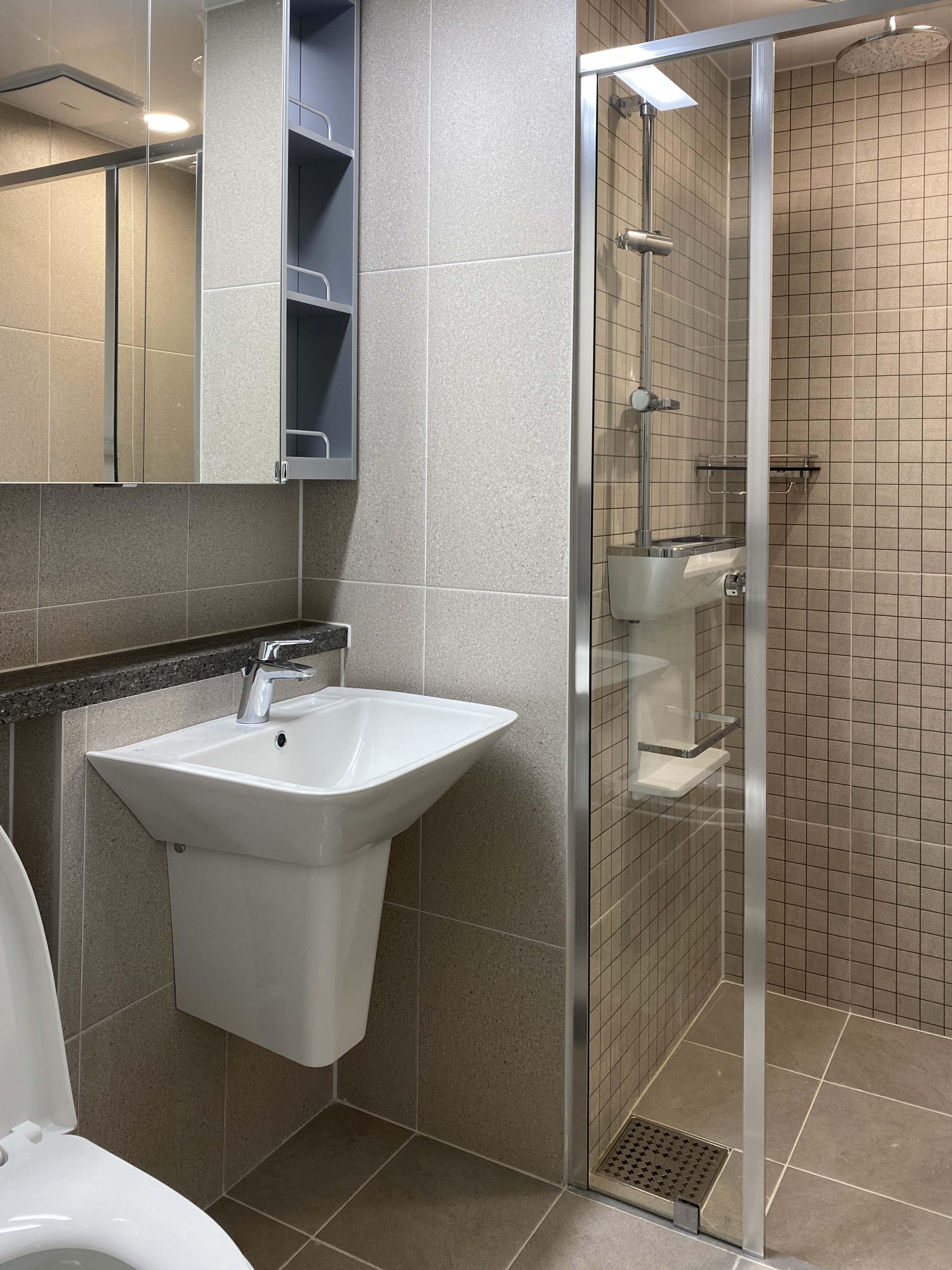 샤워기는 아직 설치되지 않았다.