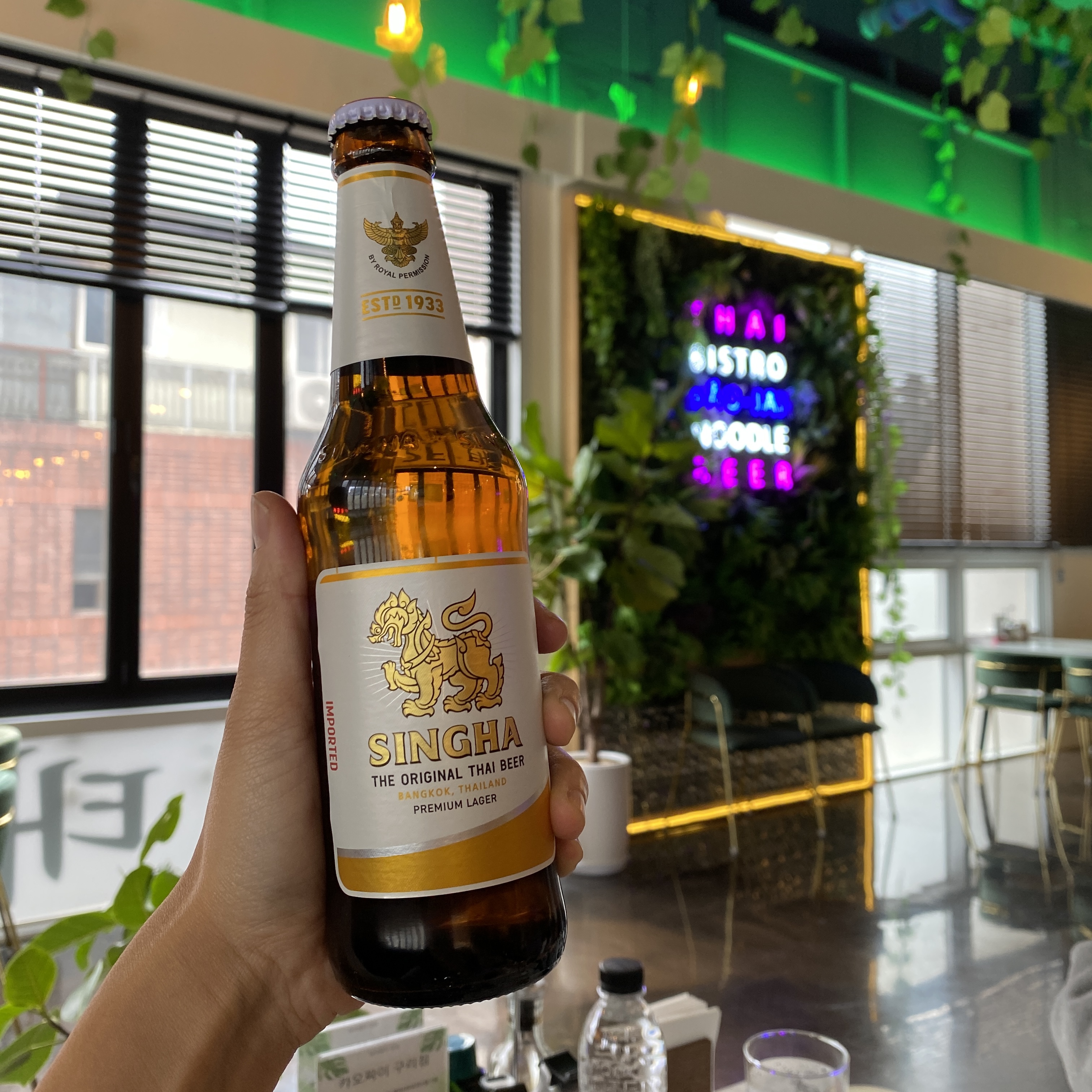 각자 음료수를 골랐는데, 역시 태국음식은 태국맥주지!! 하며 저는 싱하(singha)맥주를 골랐습니다.