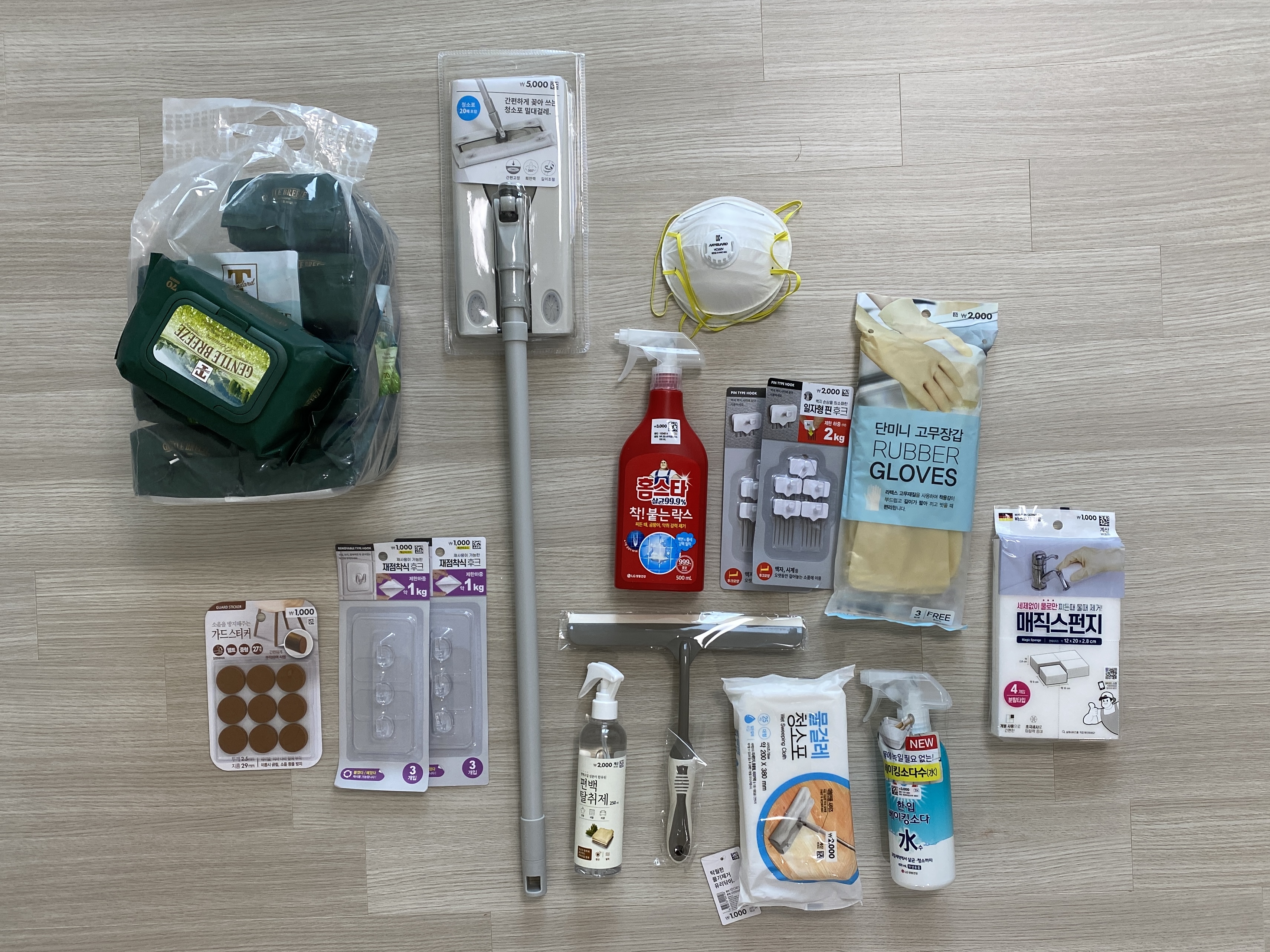 미리 유투브에서 셀프입주청소 영상과 준비물을 살펴보았고, 입주청소 하기 전날 다이소를 갔습니다.