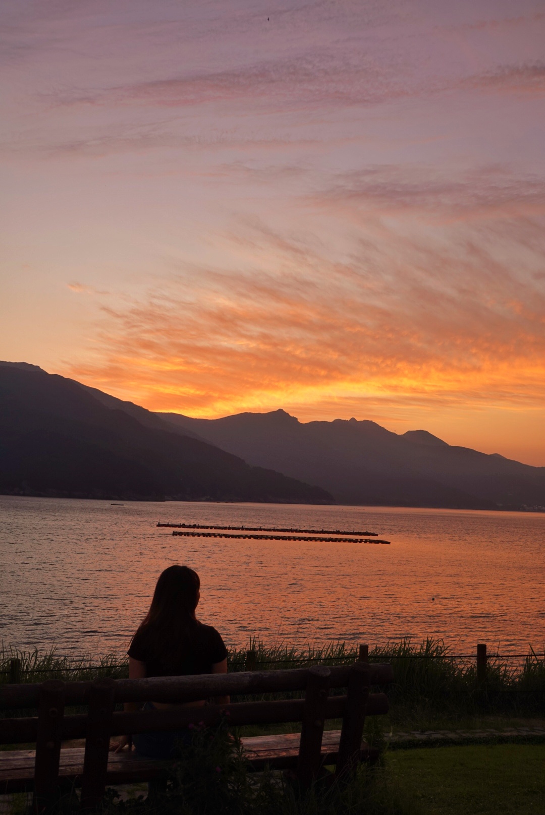 벤치에 앉아서도 한참 선셋 구경하다가, 예쁜 풍경에 나 뿌리기..📷⭐️