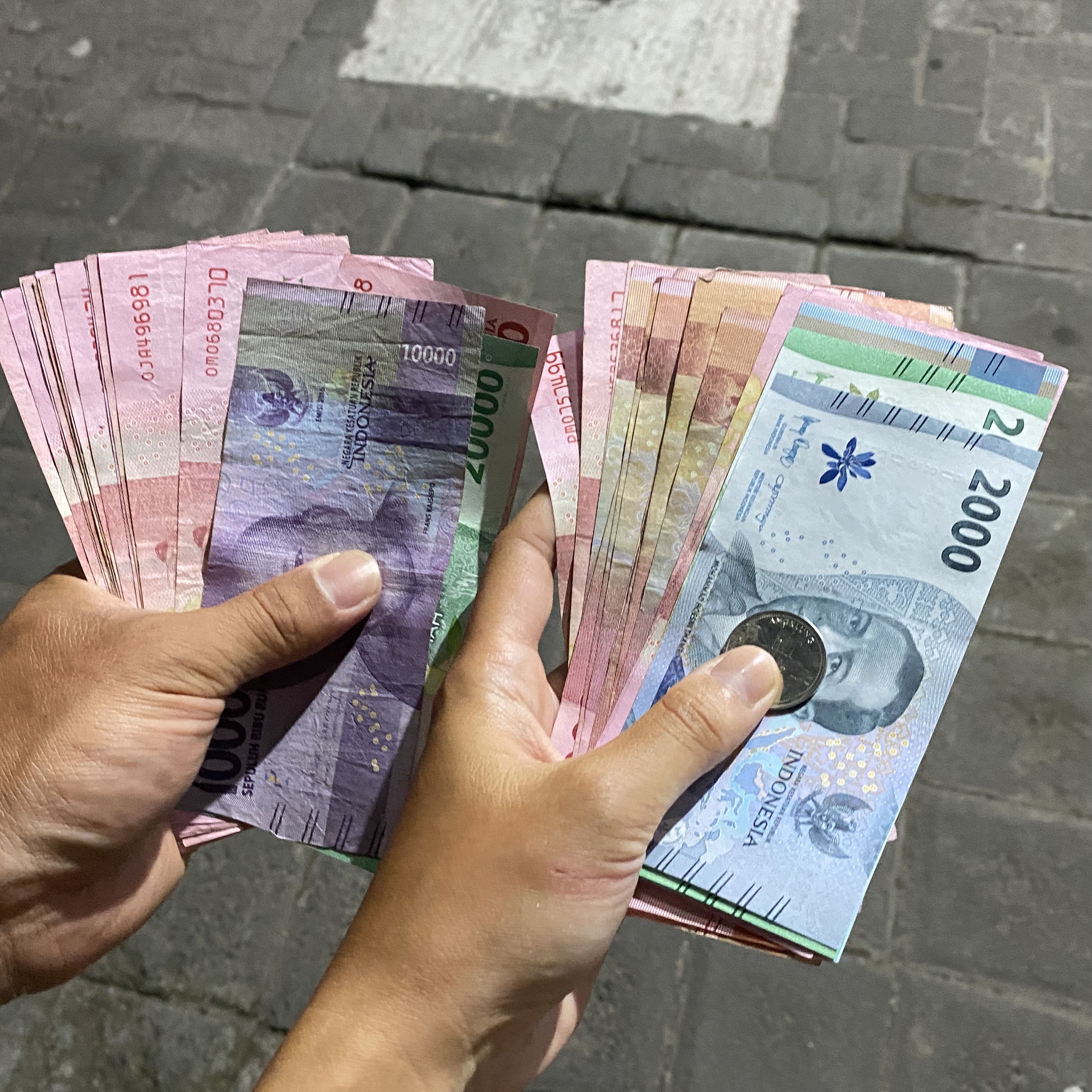 확인하기 쉽게 100K 루피아뭉치로 현금을 받습니다.