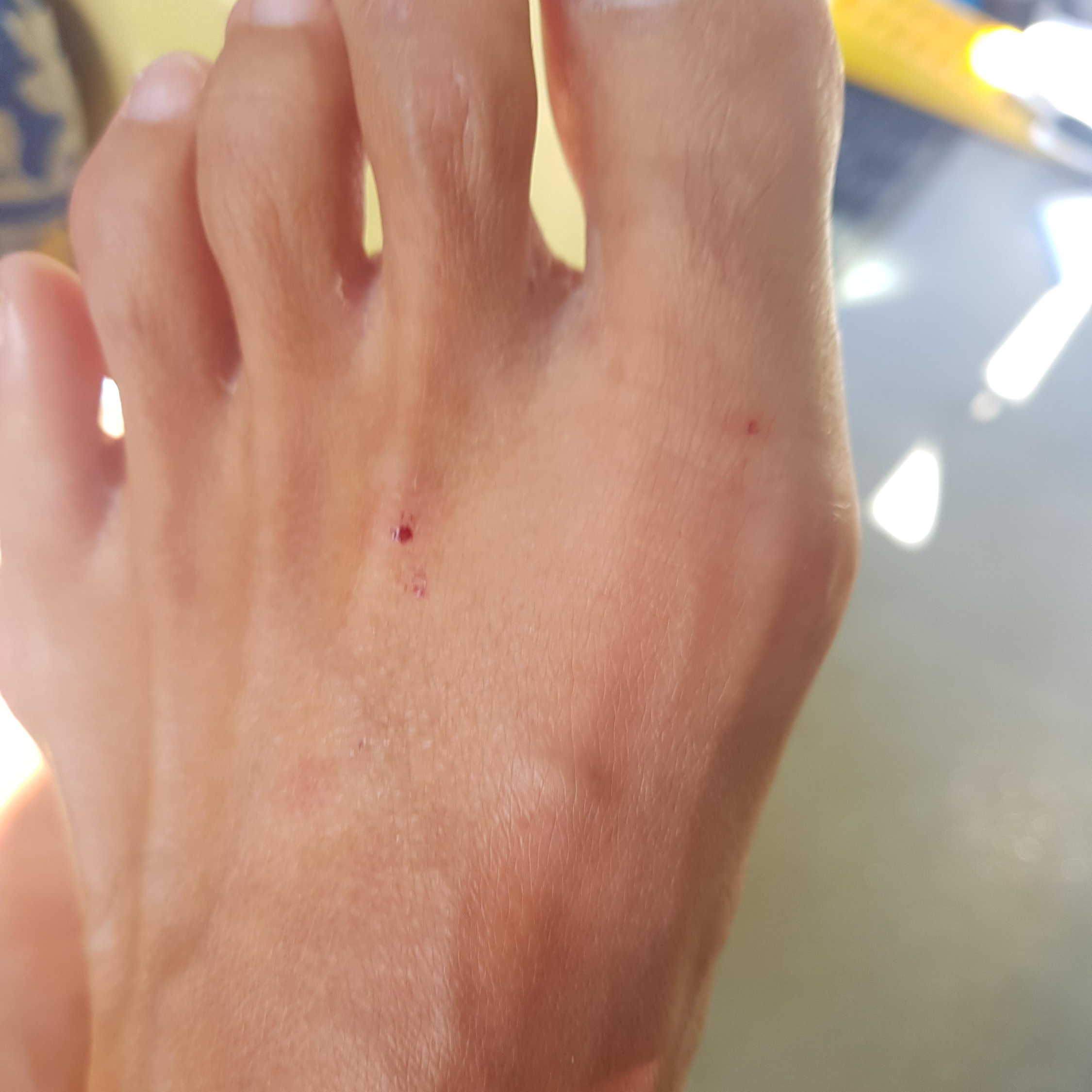 양말을 안신고 슬리퍼를 신고 있었는데, 발 전체에 물렸습니다.