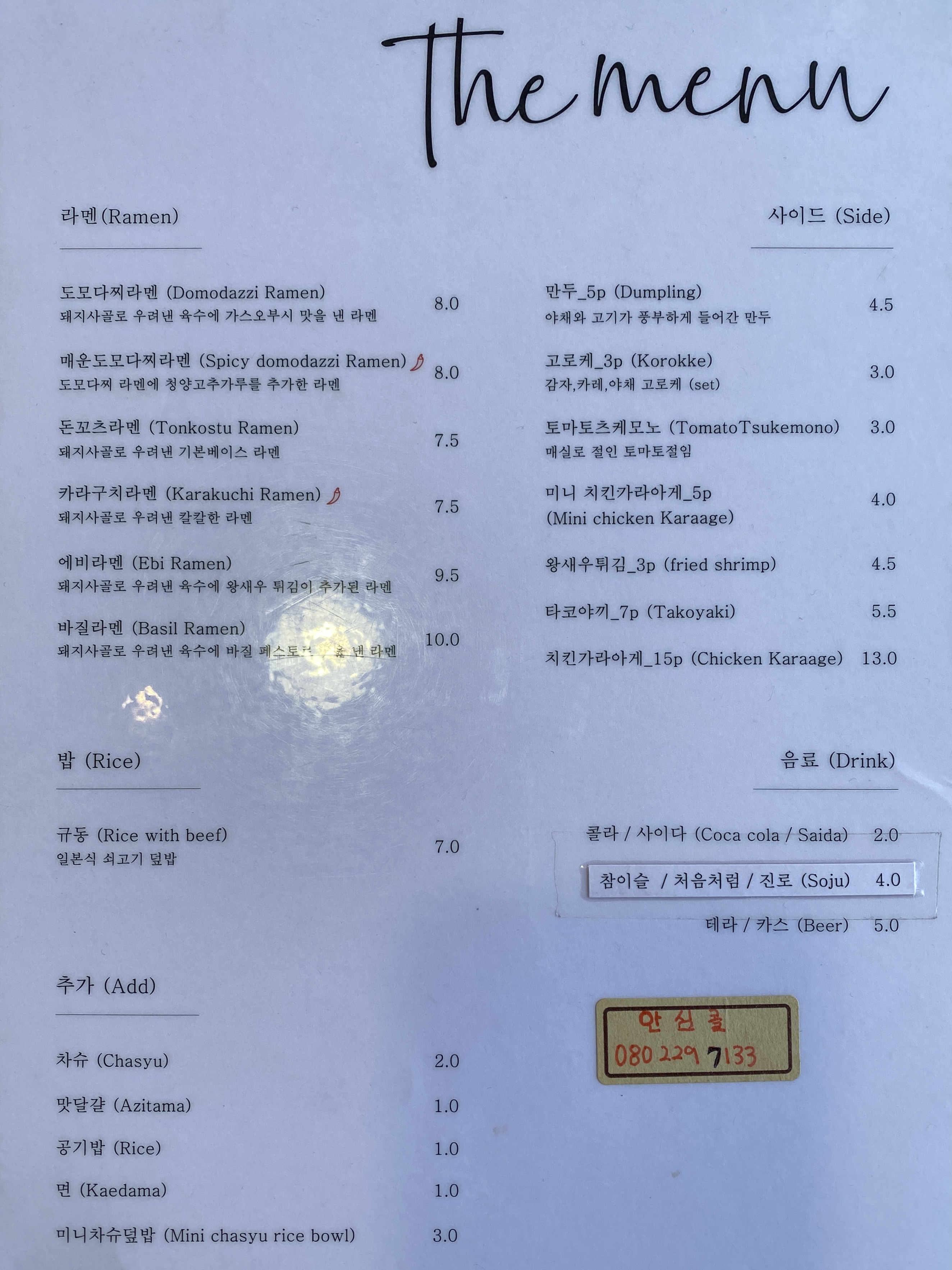 🍜 도모다찌라멘 주차: 주차장은 따로 없어서 도보로 오는 것을 추천한다.