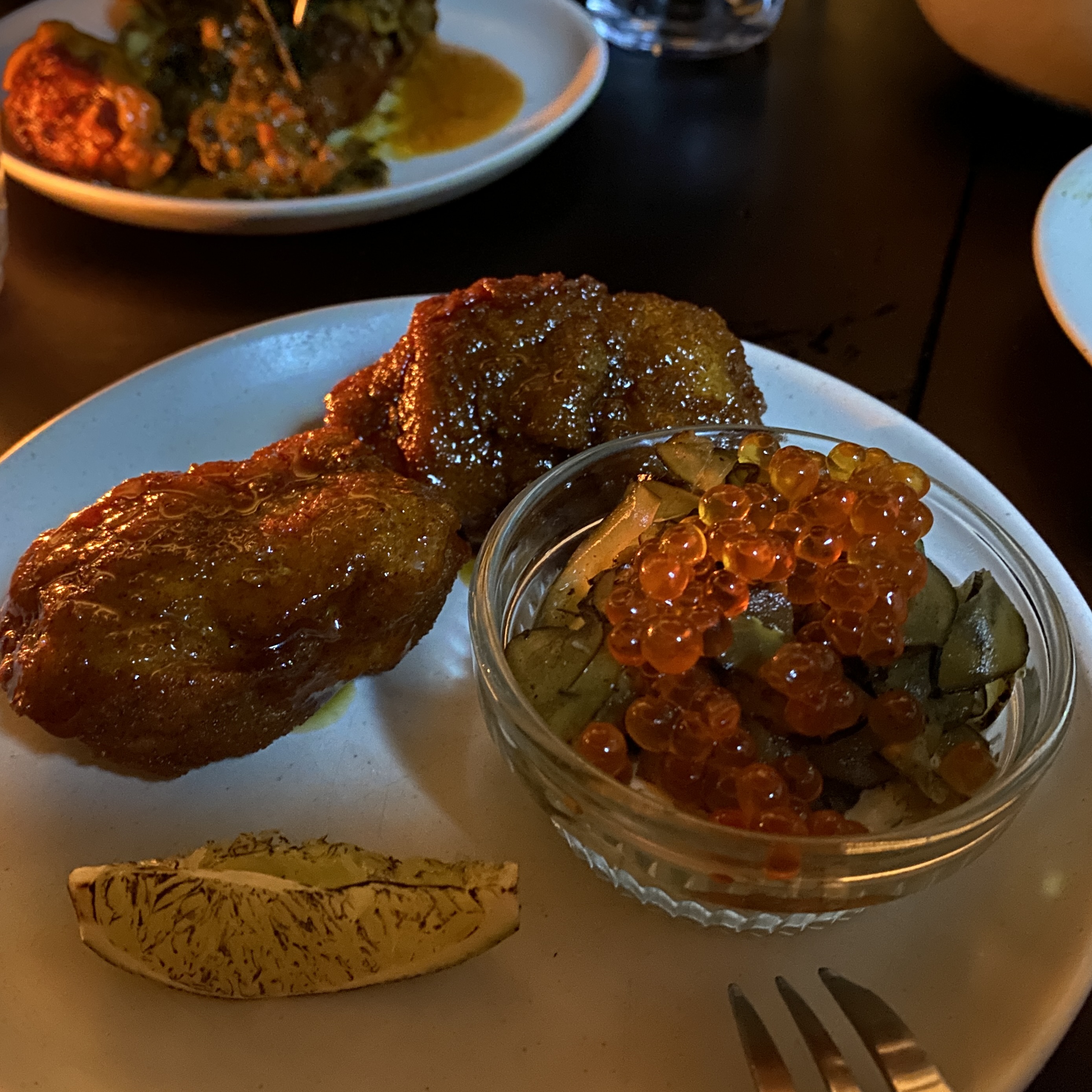 오리 가슴살의 식감이 퍽퍽하지 않고 너무 맛있었고, 위에 올라간 가지퓨레도 색다른 맛이었습니다.