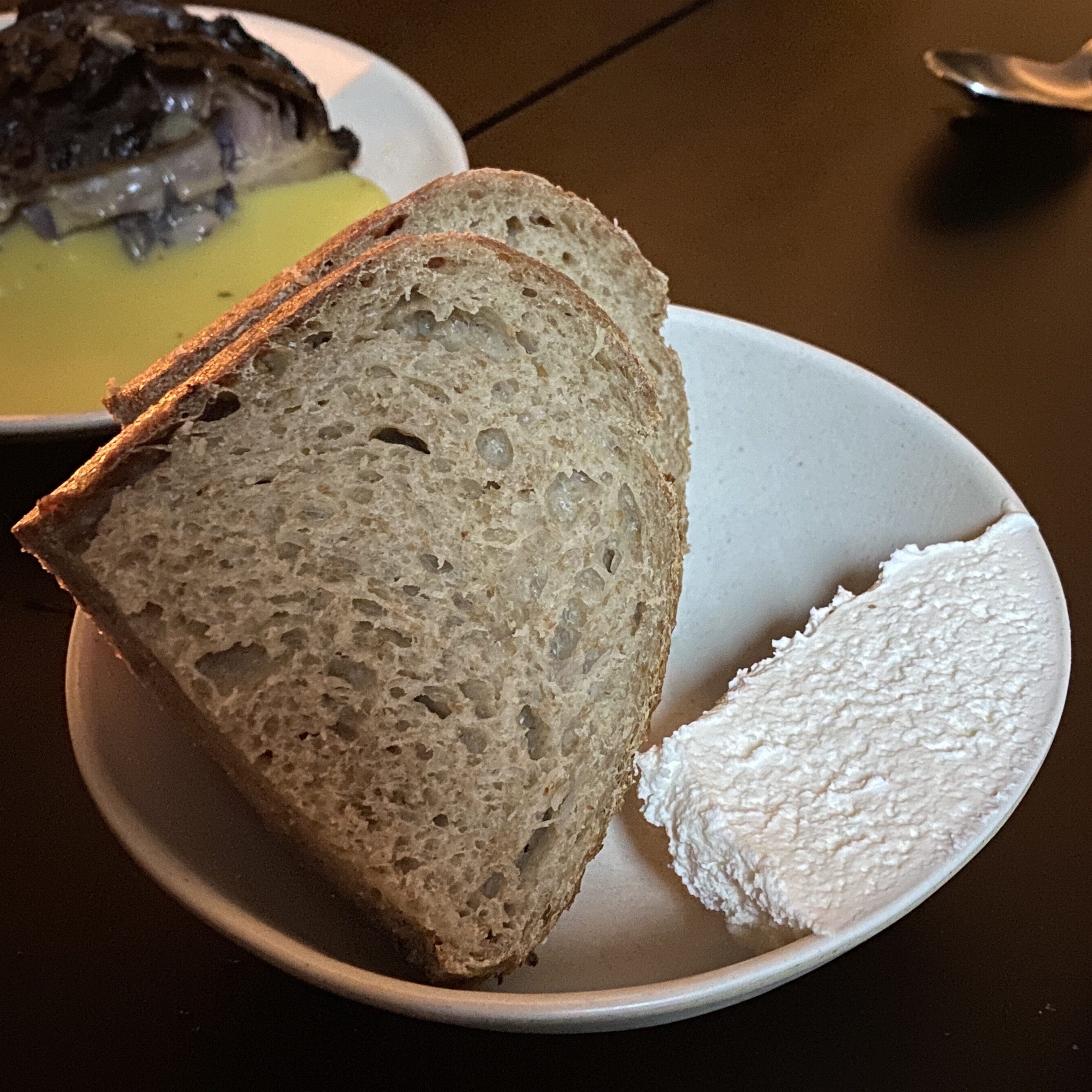 네 번째 메뉴는 사워도우입니다. 빵과 같이 나오는 크림이 새콤할 줄 알았는데, 짭쪼롬한 맛이 더 강해서 맛있었습니다.