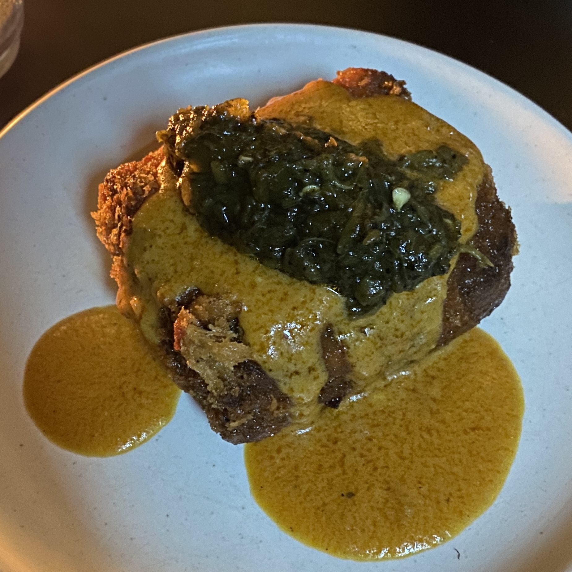 오리 가슴살의 식감이 퍽퍽하지 않고 너무 맛있었고, 위에 올라간 가지퓨레도 색다른 맛이었습니다.