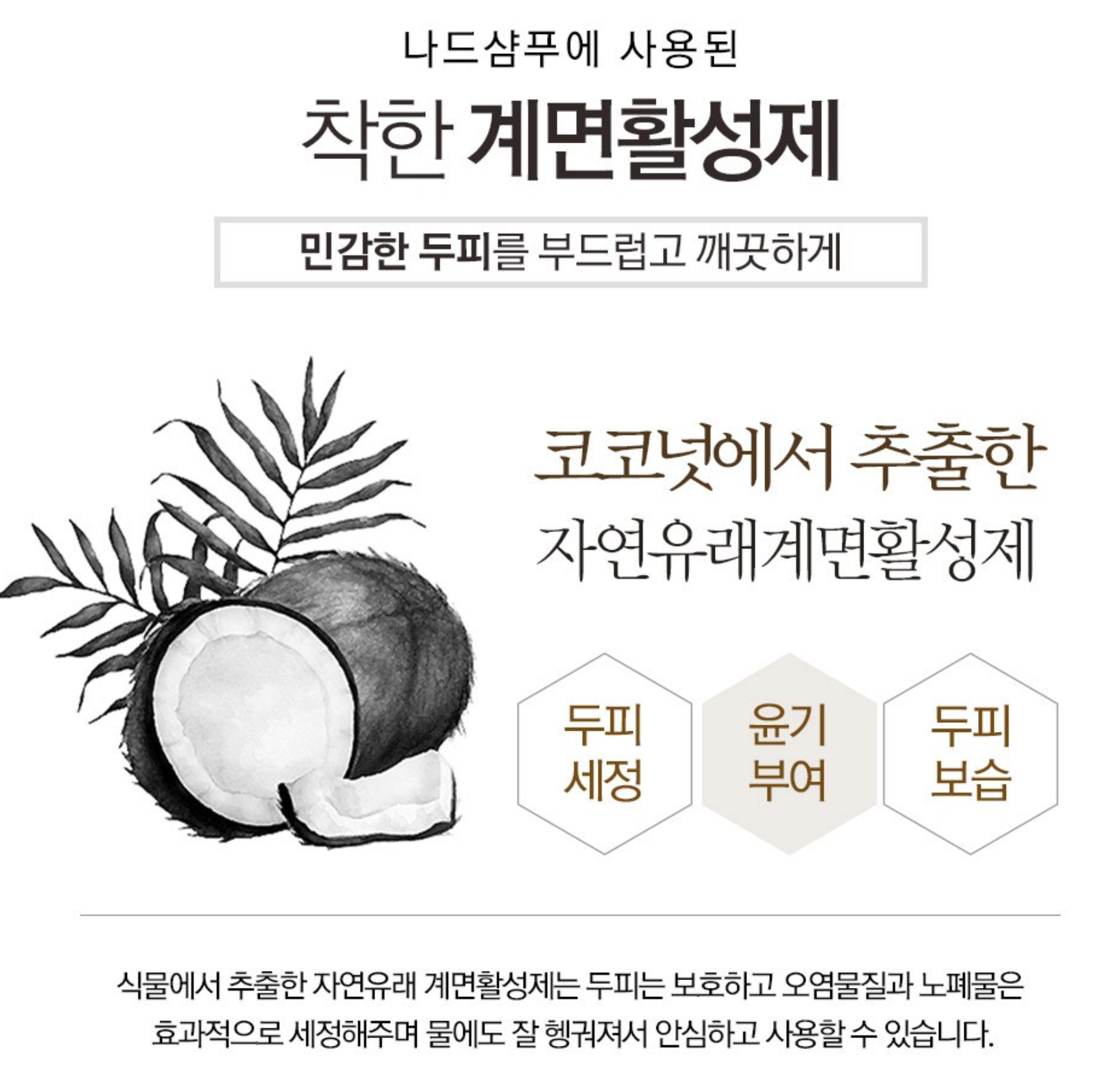 피부자극에도 적은 좋은 성분으로 만든 나드샴푸.