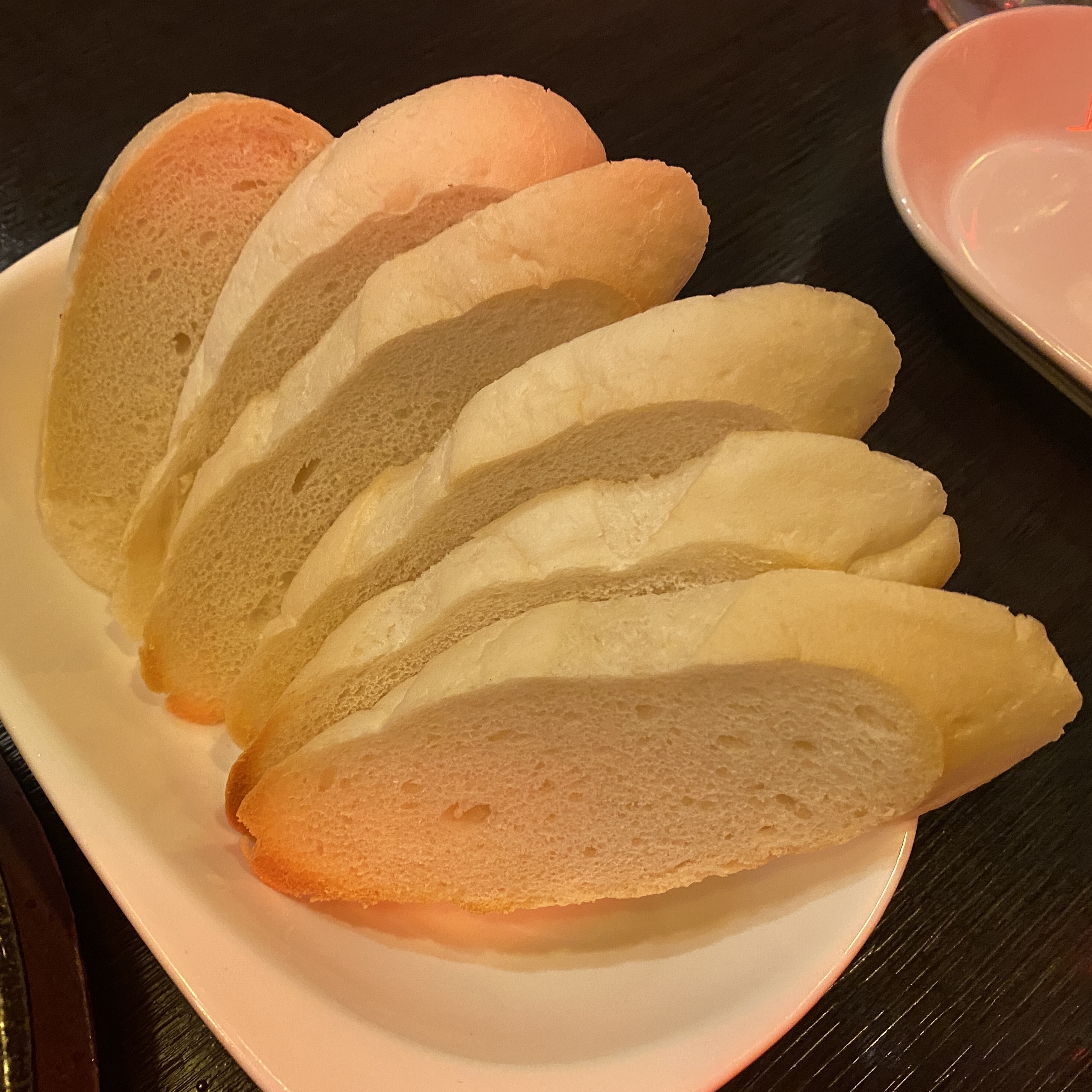 감바스를 시키면 바게트 빵 6조각이 같이 나옵니다.