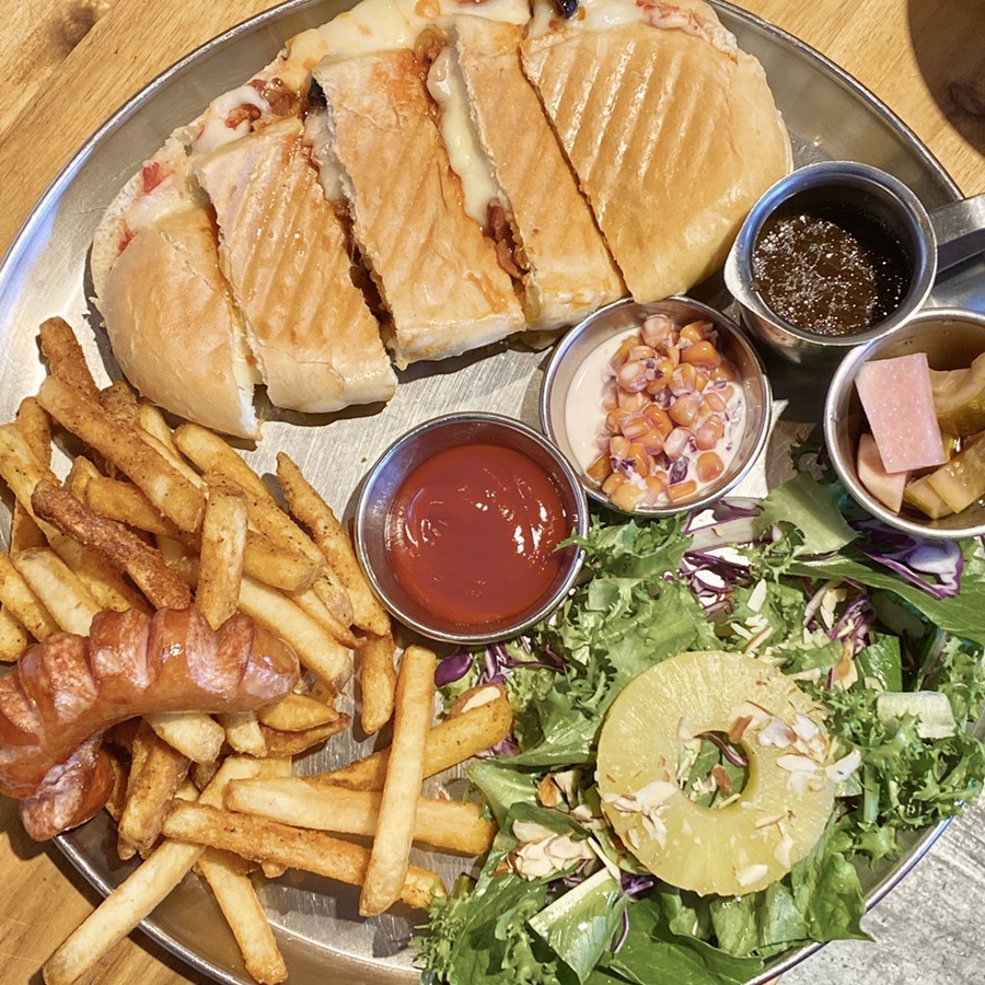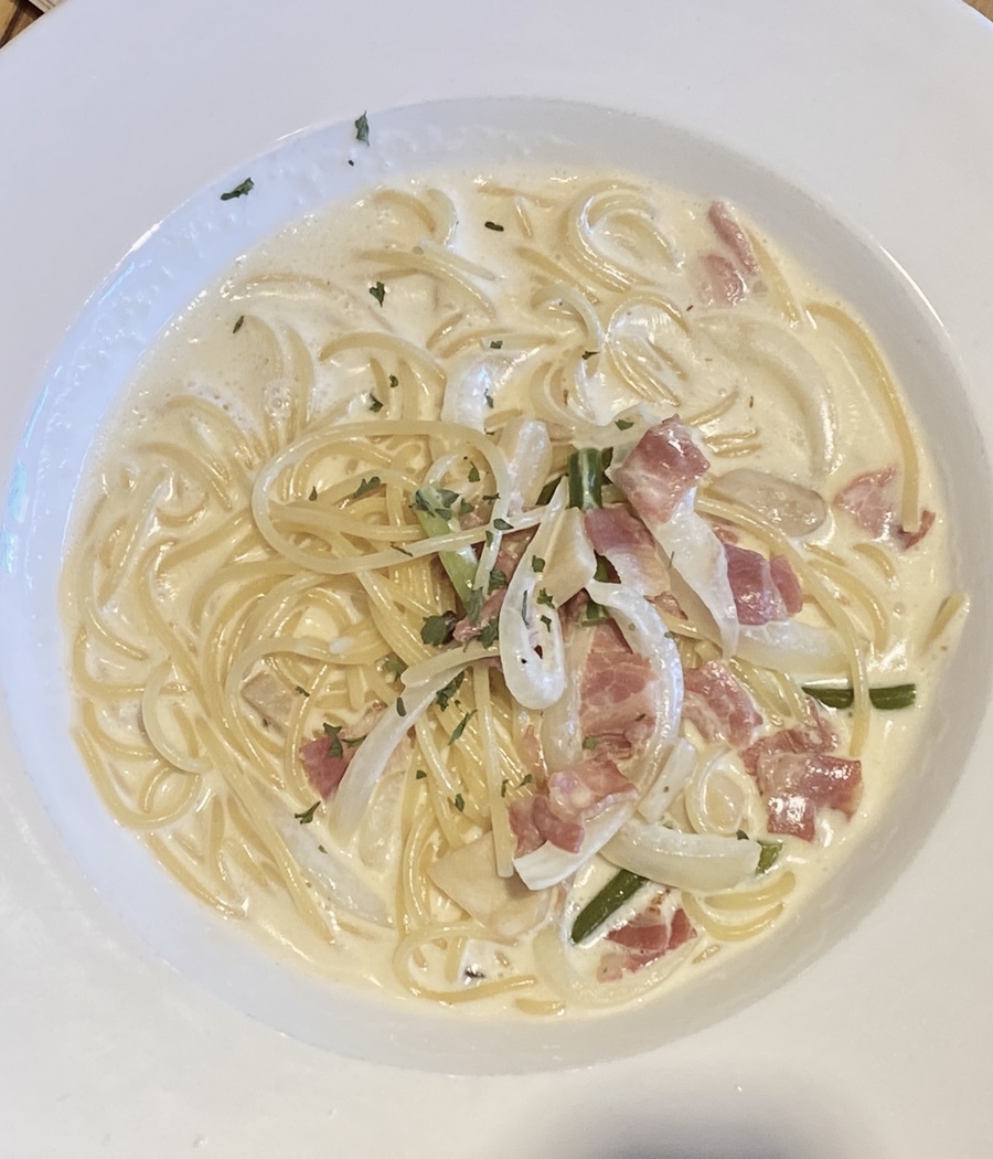 베이컨 토마토 파니니 + 까르보나라입니다.