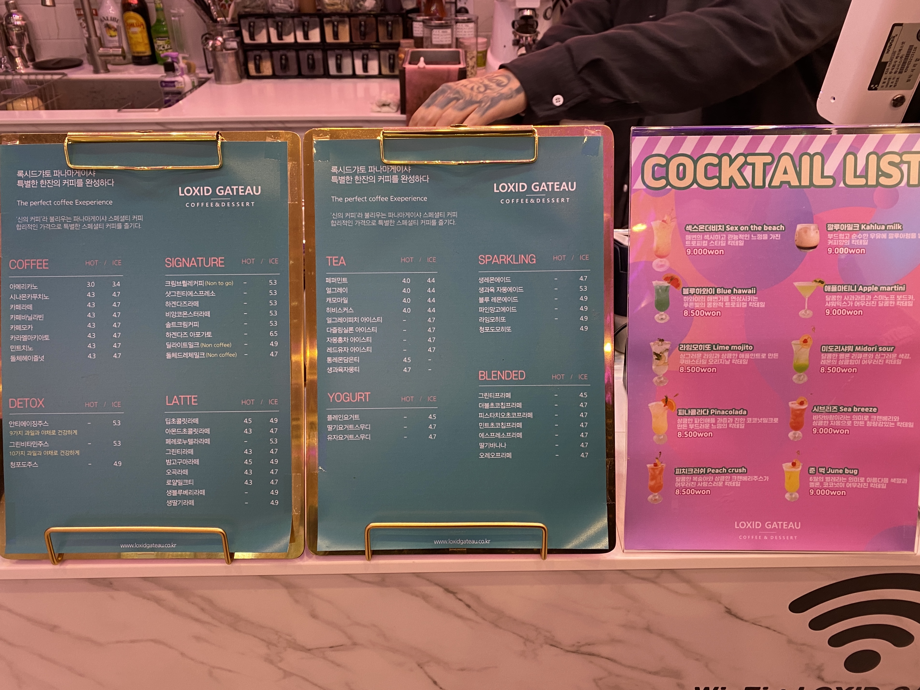 카페 메뉴 옆에는 칵테일 메뉴도 있었어요.