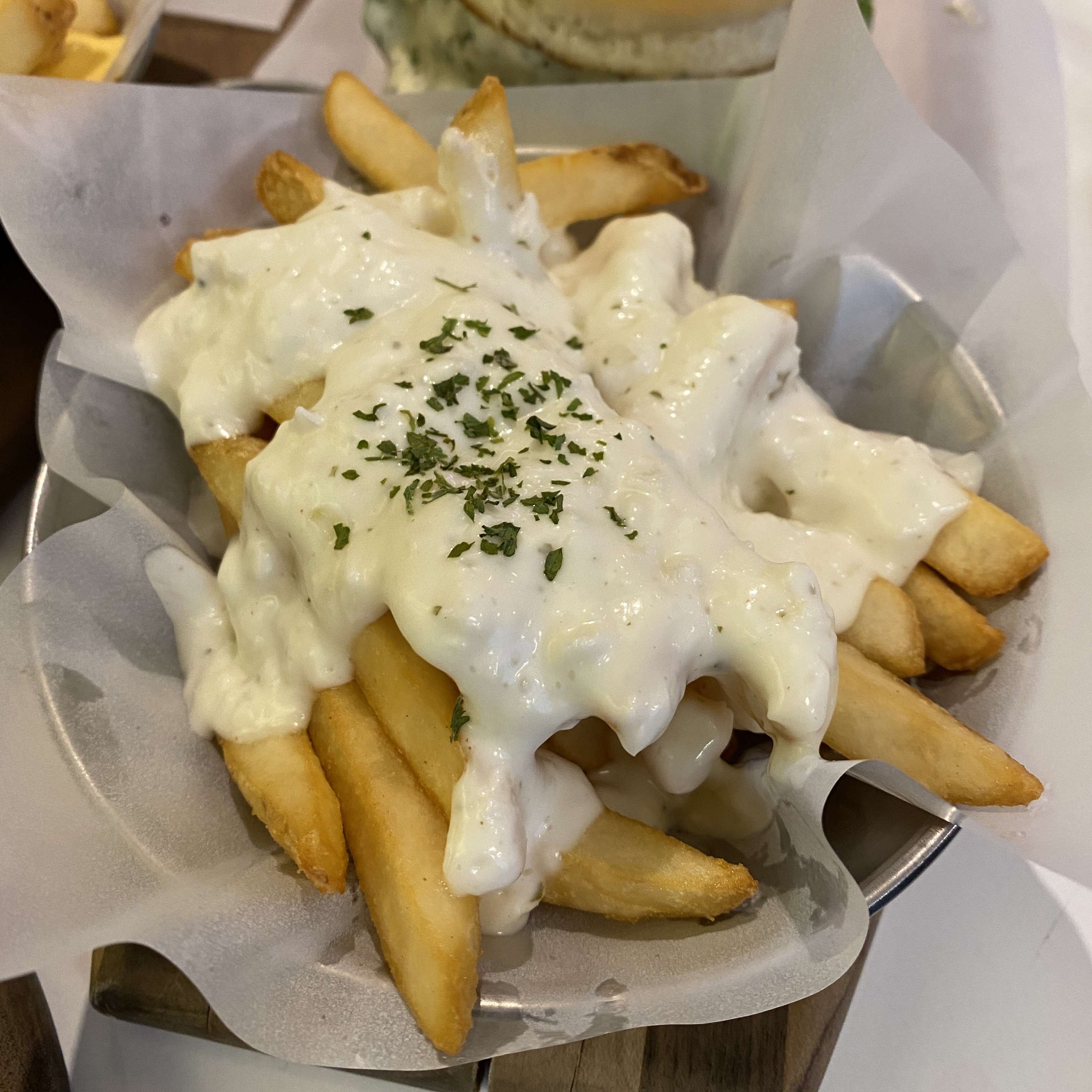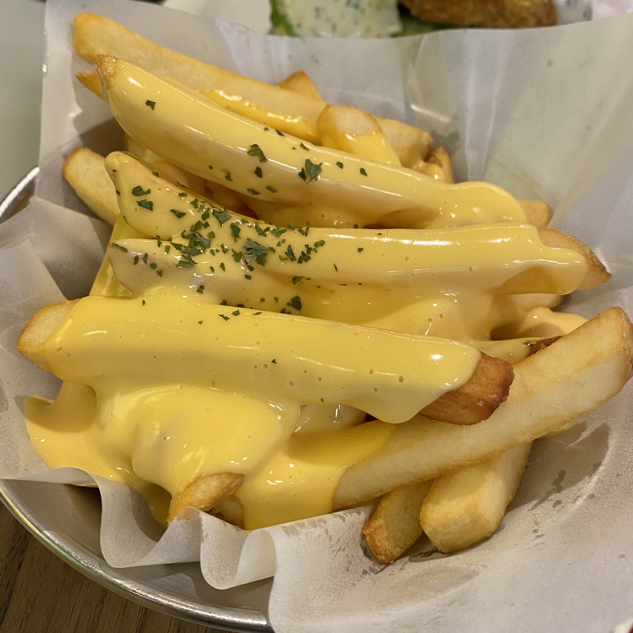 그리고 감자튀김은 치즈와 어니언으로 주문했어요.