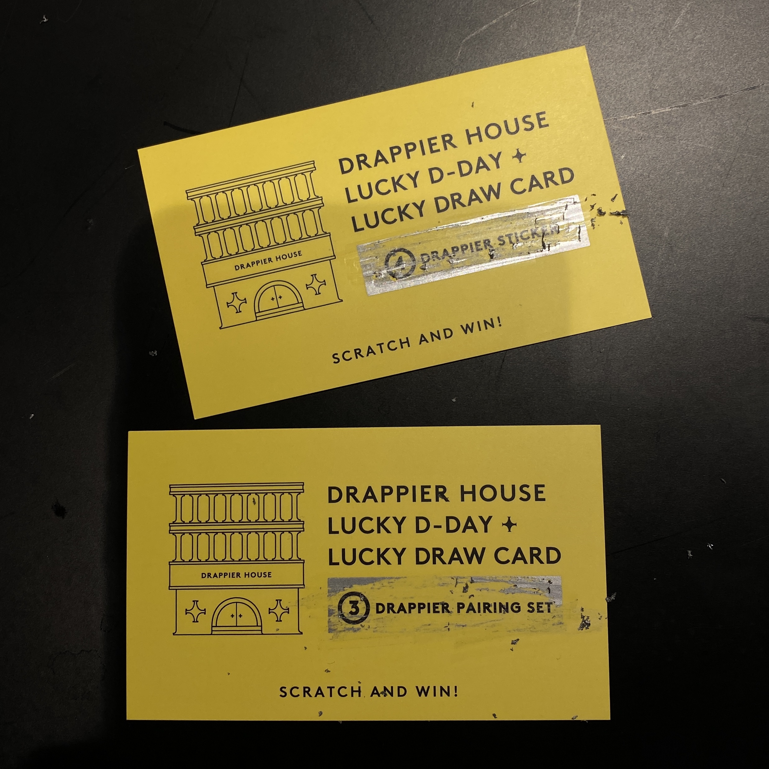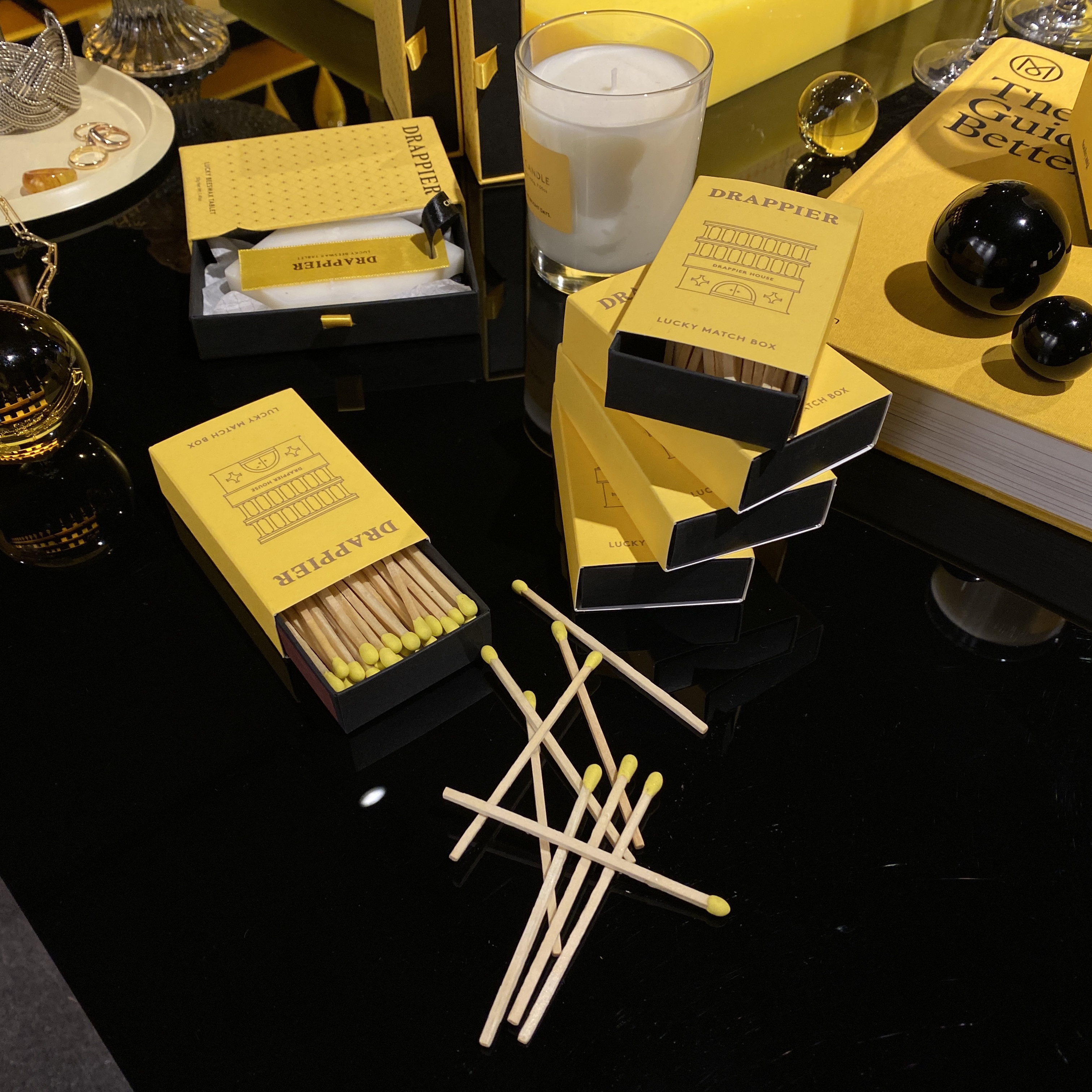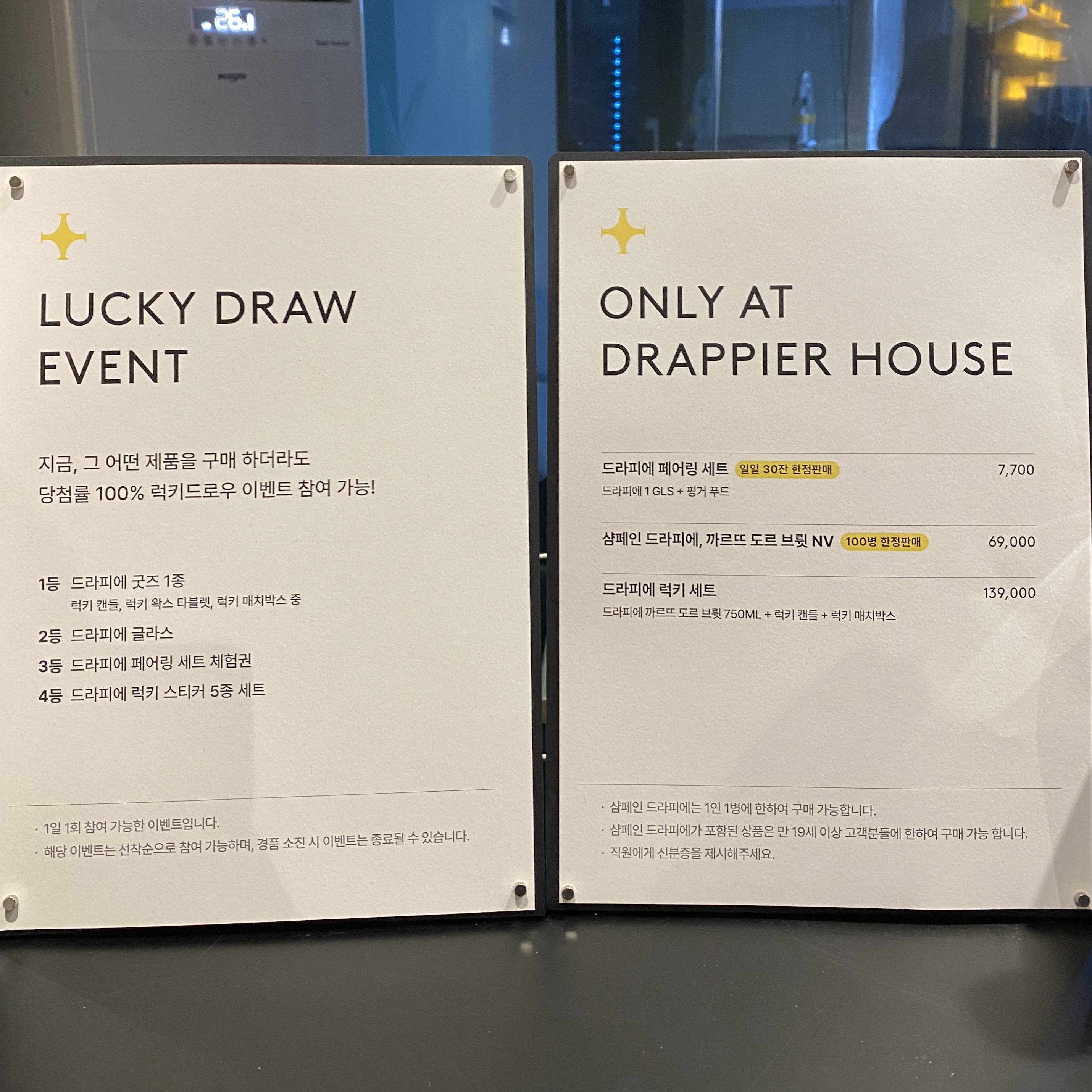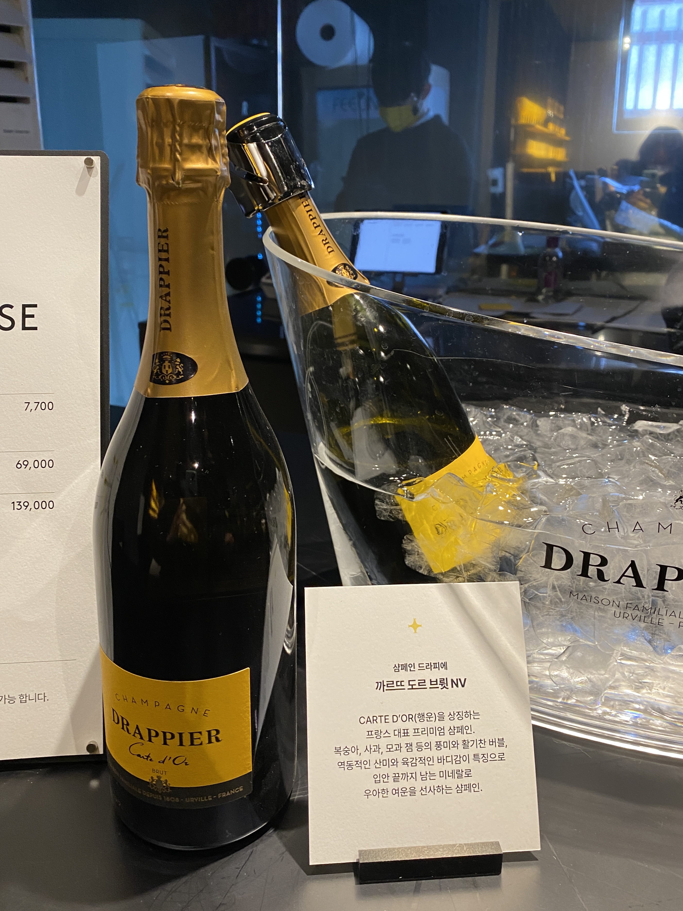 굿즈와 드라피에 샴페인을 전시해두었어요.