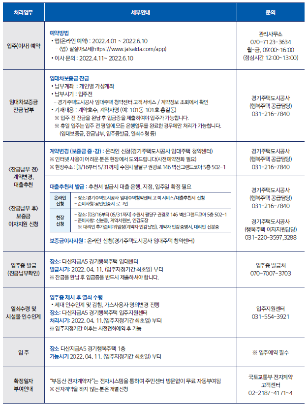 [GH주택청약센터] - [고객지원] - [입주안내] 에 들어가면 확인할 수 있었다.