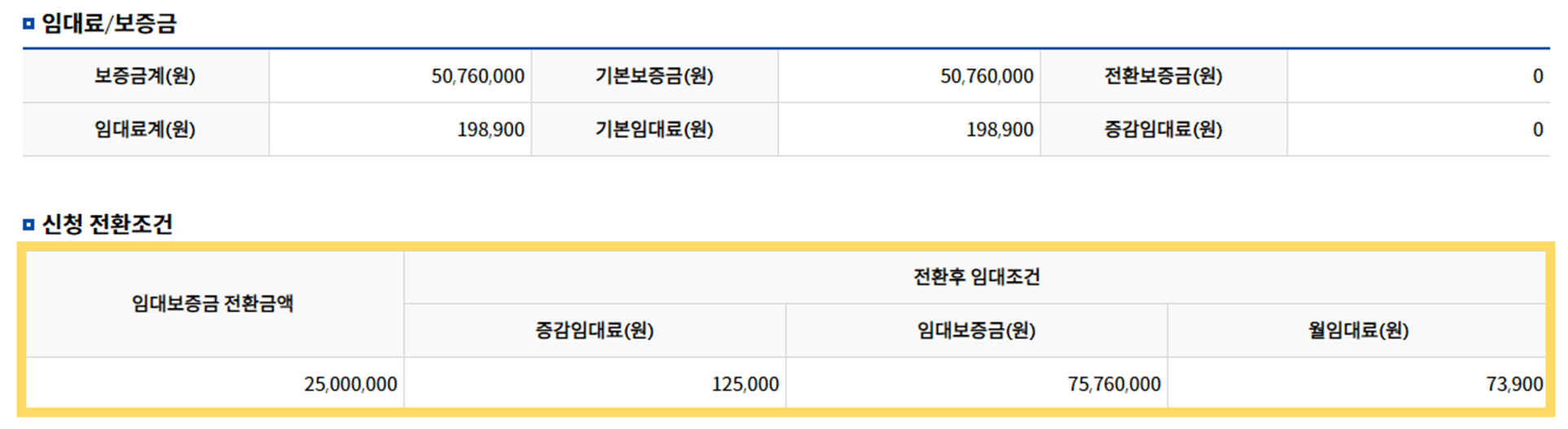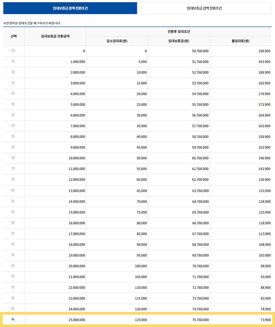 아래와 같이 임대보증금 변경을 할 수 있다.