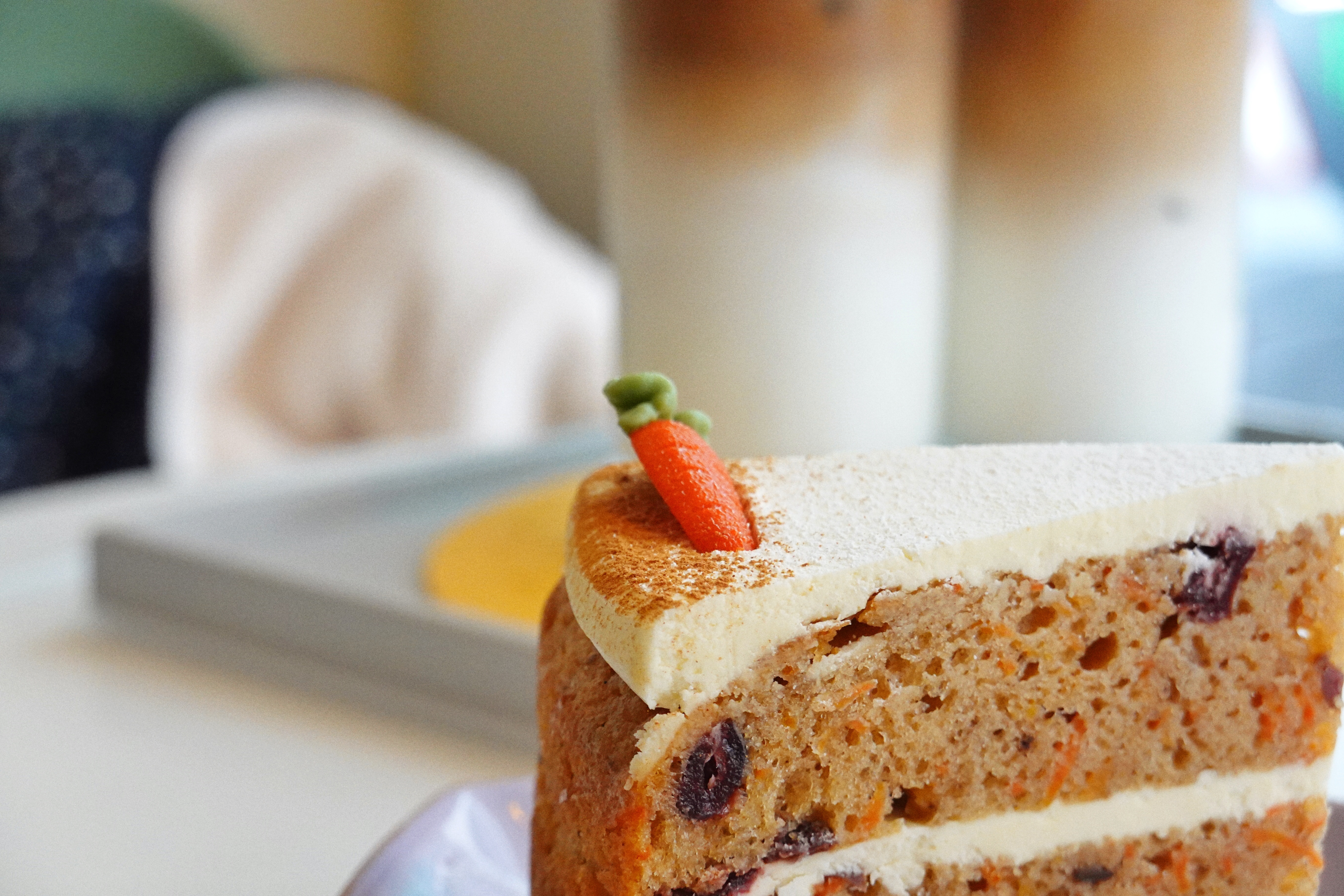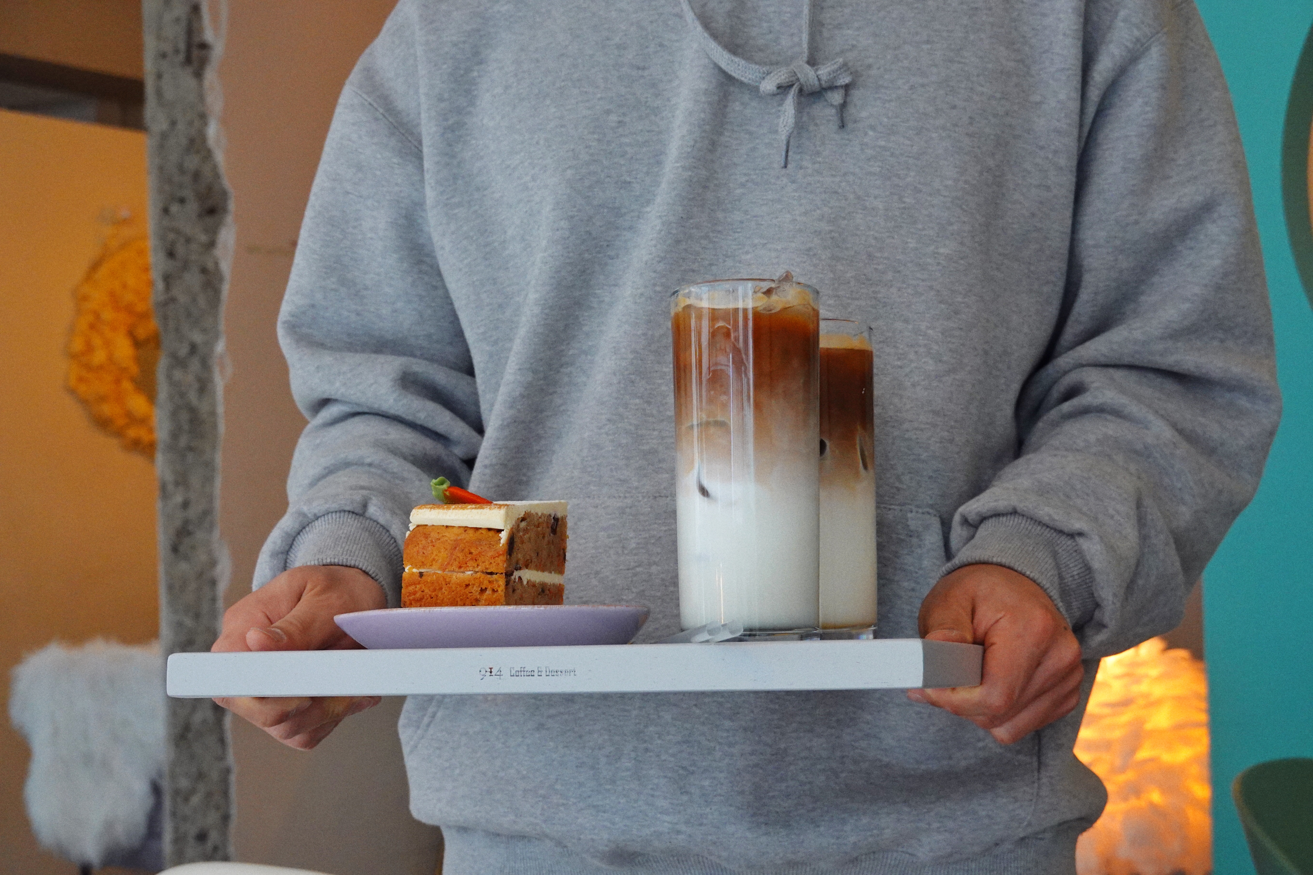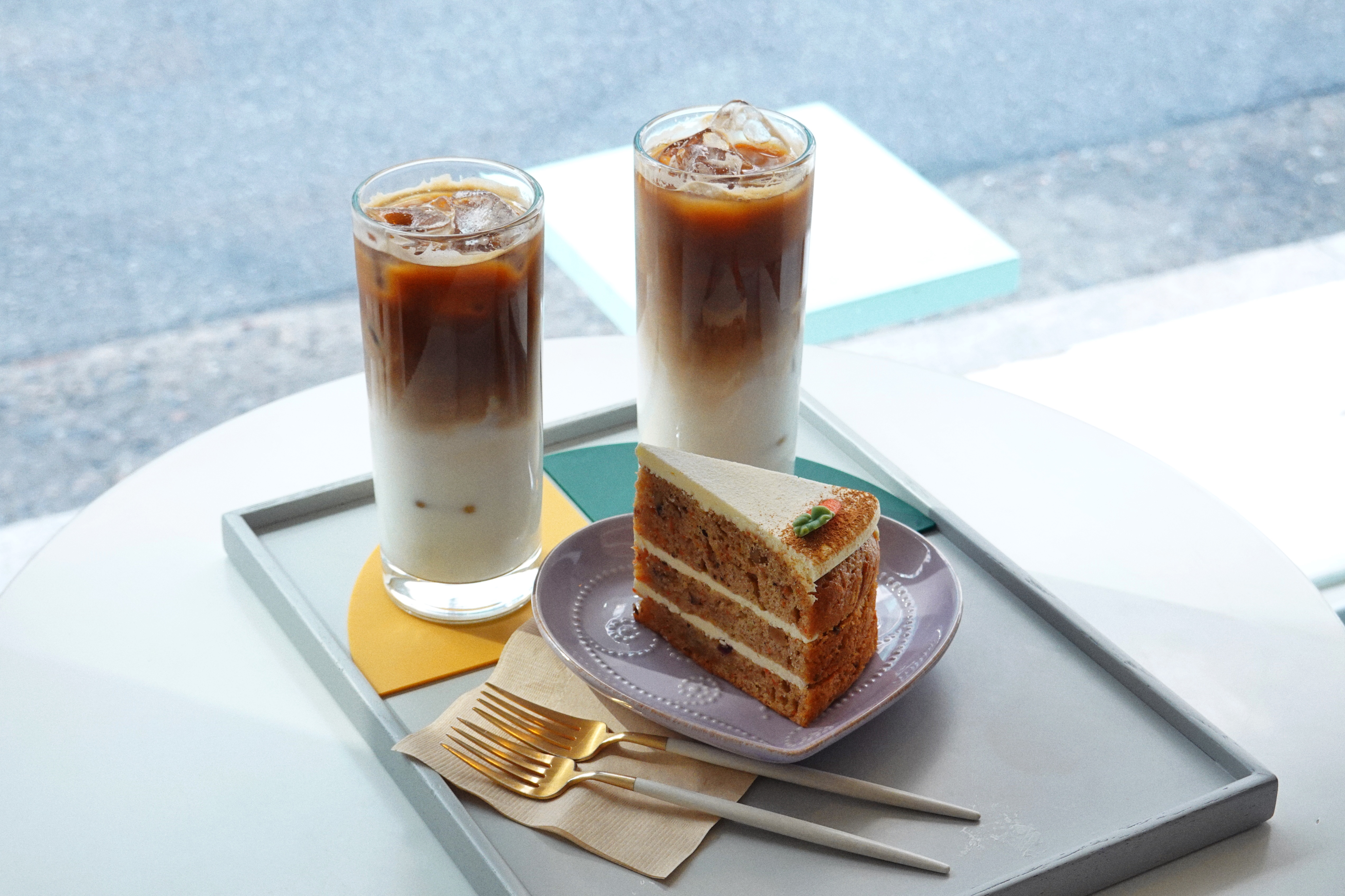 당근케이크 1개와 아이스라떼 두잔을 주문했어요.