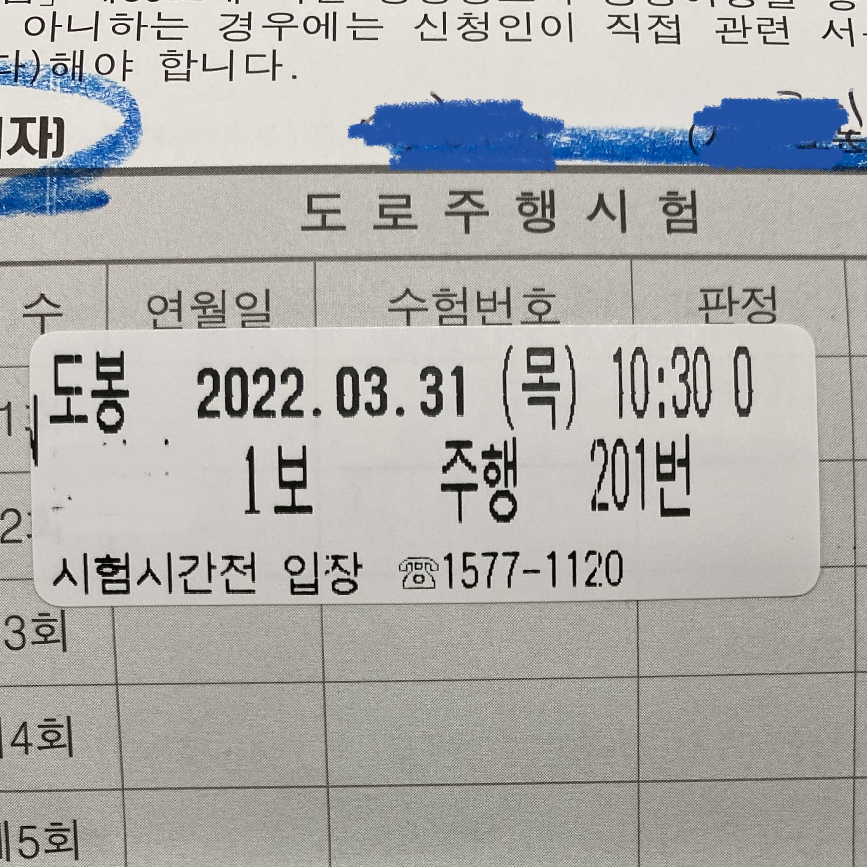 1종보통 도로주행 1차시험 준비물 및 불합격 후기. 본문