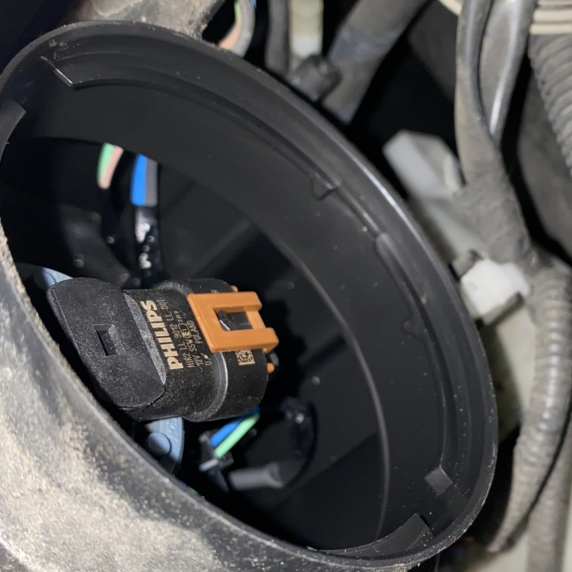 헤드라이트 뒤쪽에 있는 뚜껑을 열어줍니다.
