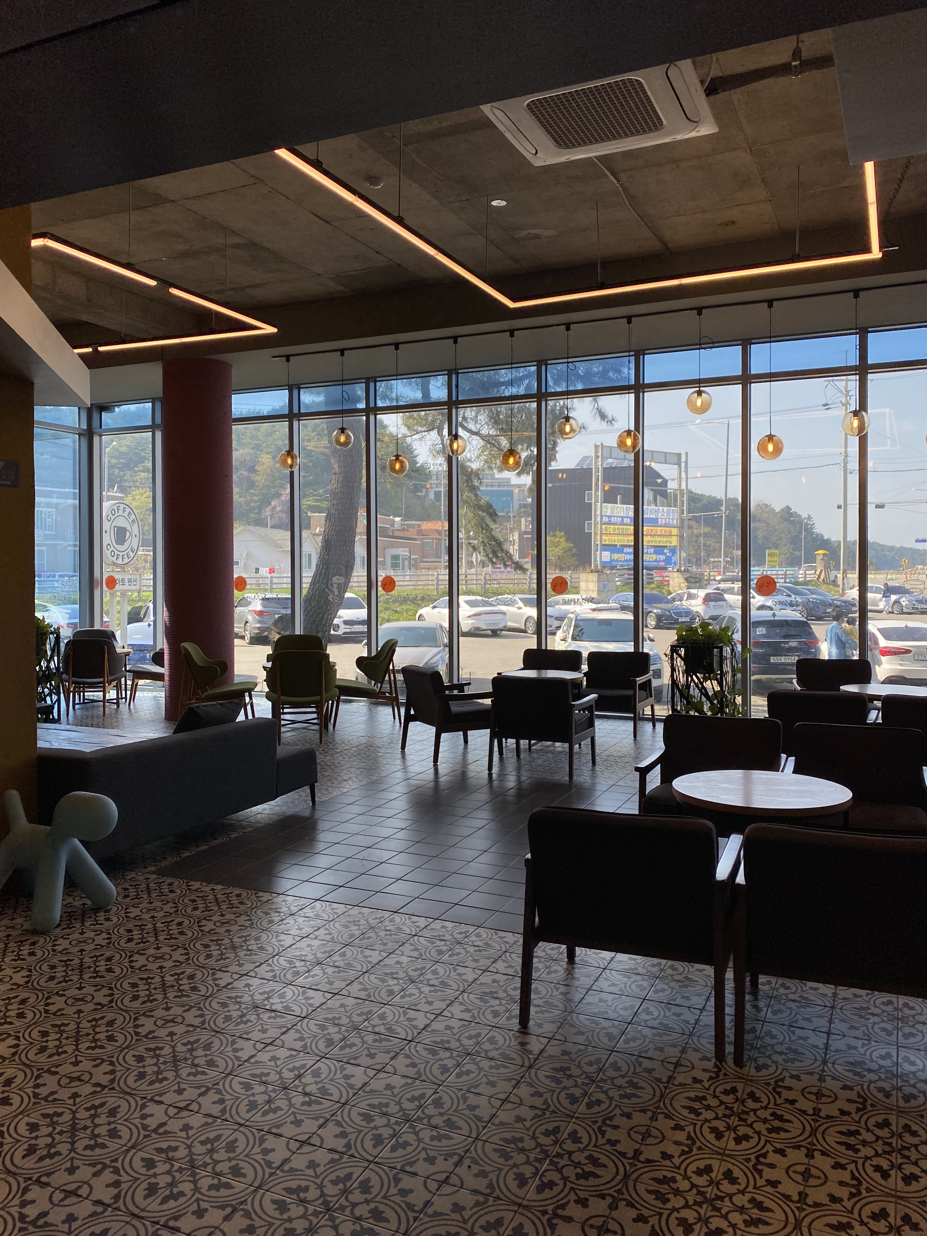 주차장 바로 옆에 엄청 큰 카페가 하나 있었어요.