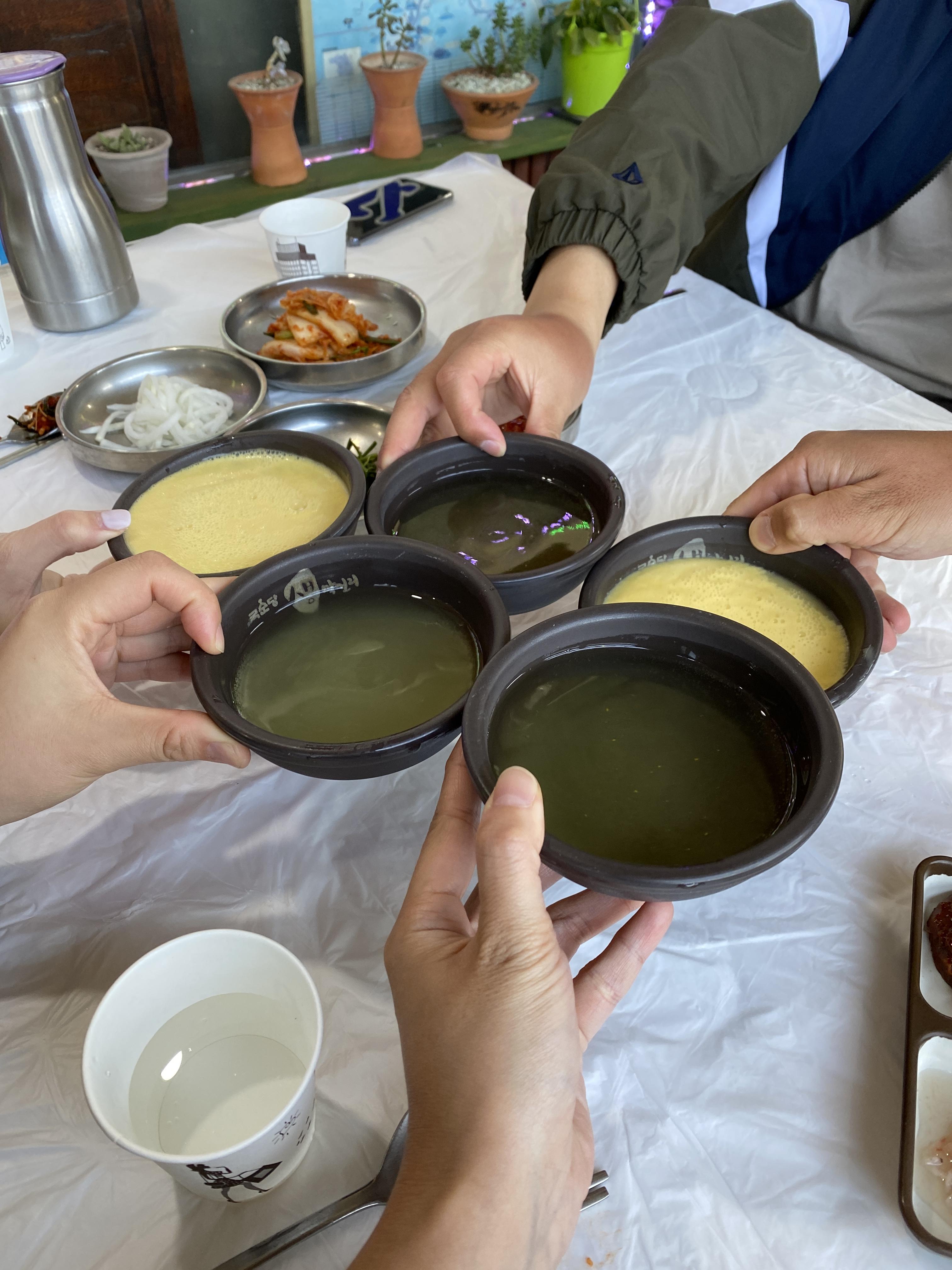 본 메뉴가 나오기 전, 옥수수 막걸리를 한잔씩 마셨습니다.