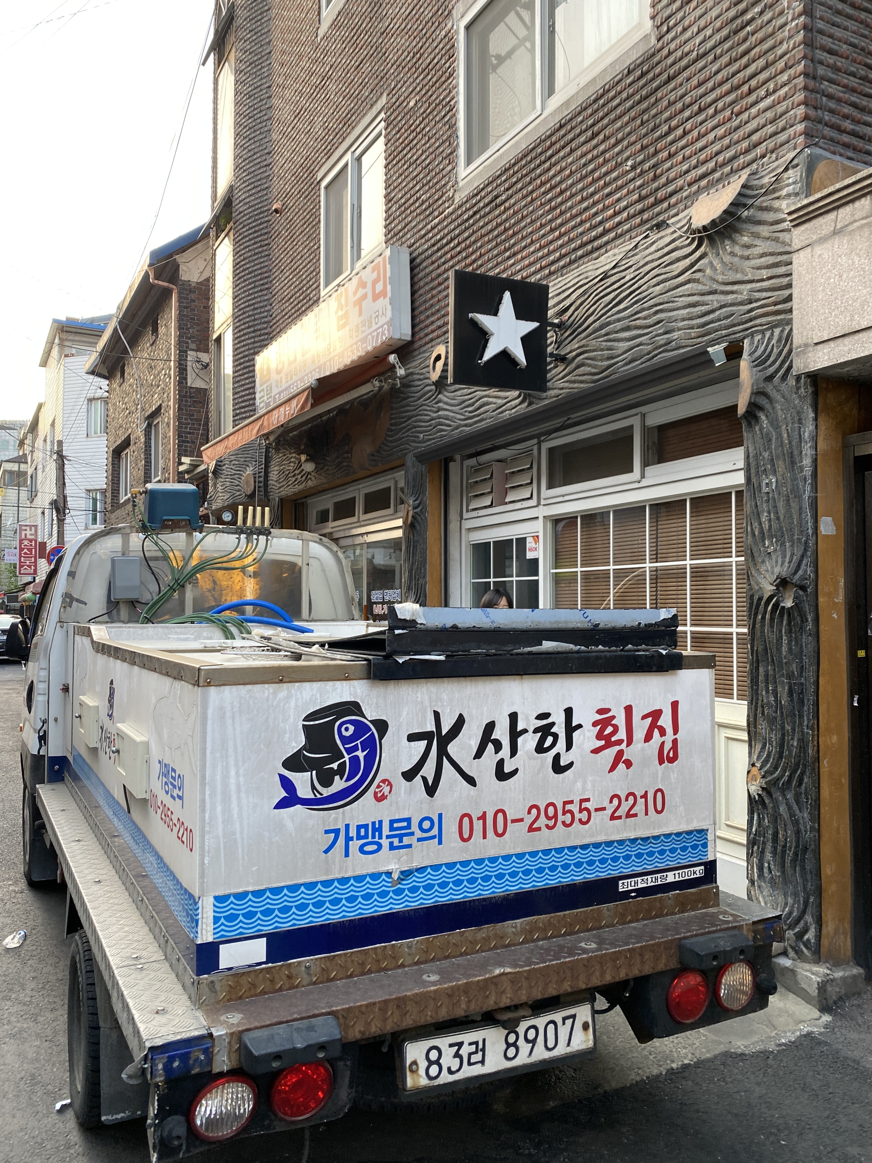 안주가 맛있어서 술이 술술 들어갔던 수산한횟집.