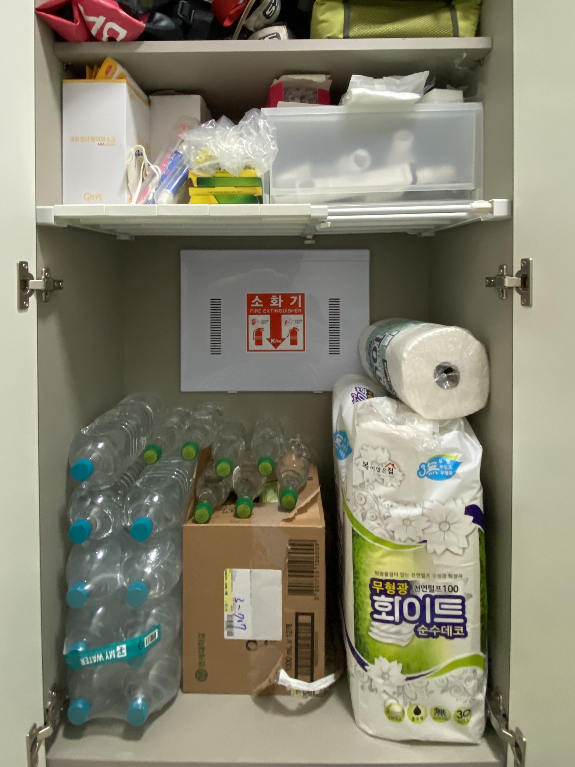 위에는 청소도구나 대량으로 구매해야되는 짜잘한 생활용품, 마스크 등을 두었습니다.