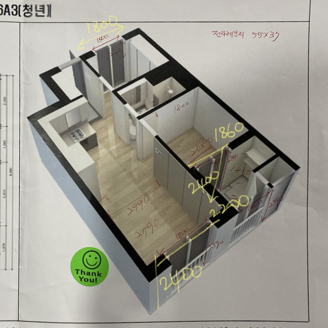 계산을 해보니 거실과 침실 모두 제작사이즈가 동일하게 나왔어요.