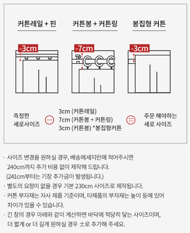 커튼 맞춤제작은 배송메세지에 꼭! 커튼 높이를 적어주셔야되요. 아니면 기본 230cm로 제작이 되는 것 같더라구요.