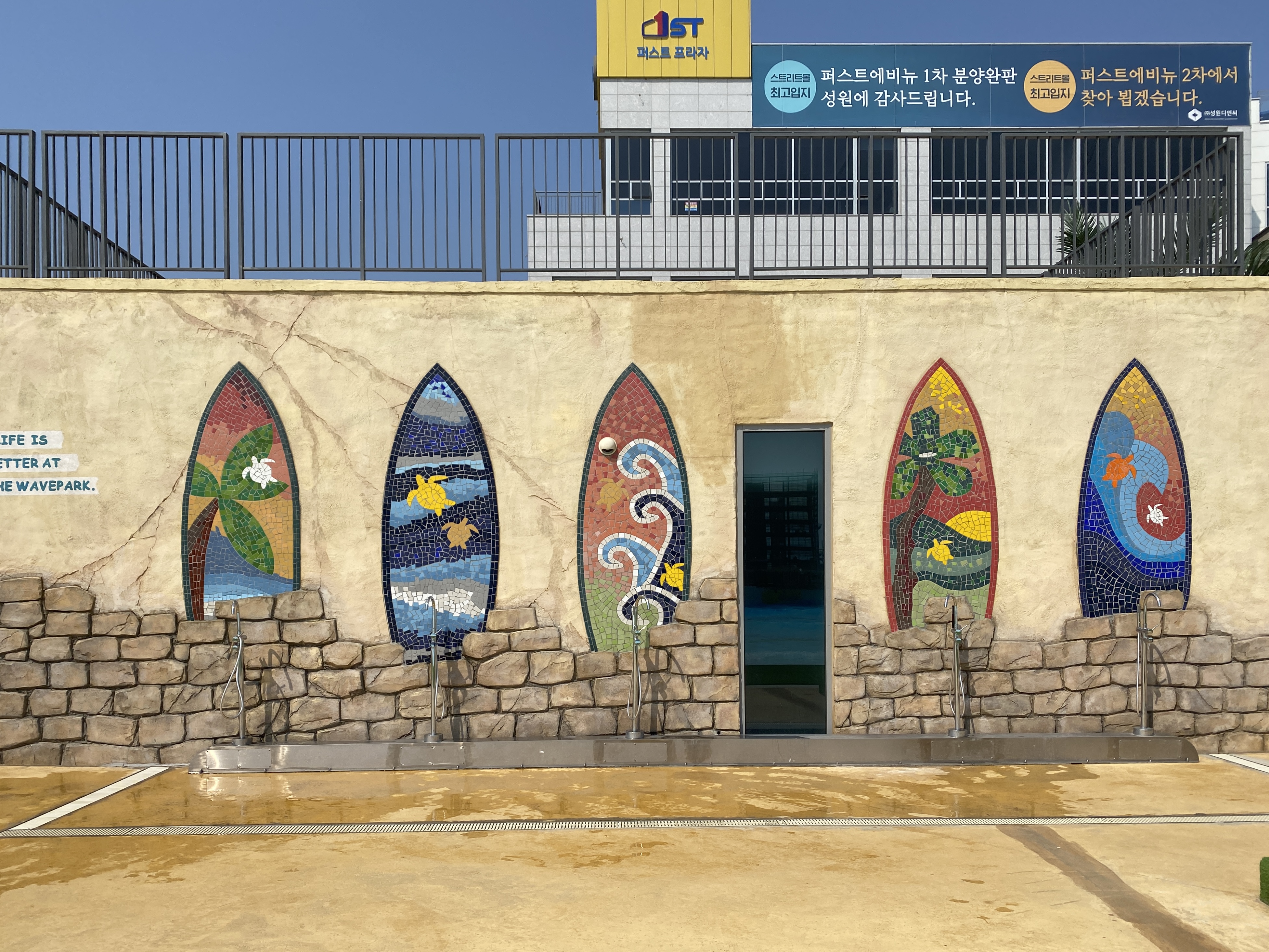 저희는 11시, 1시 타임이었는데, 조금 늦게 도착한 바람에 후다닥 수트를 갈아입고 웨이브파크로 향했습니다.