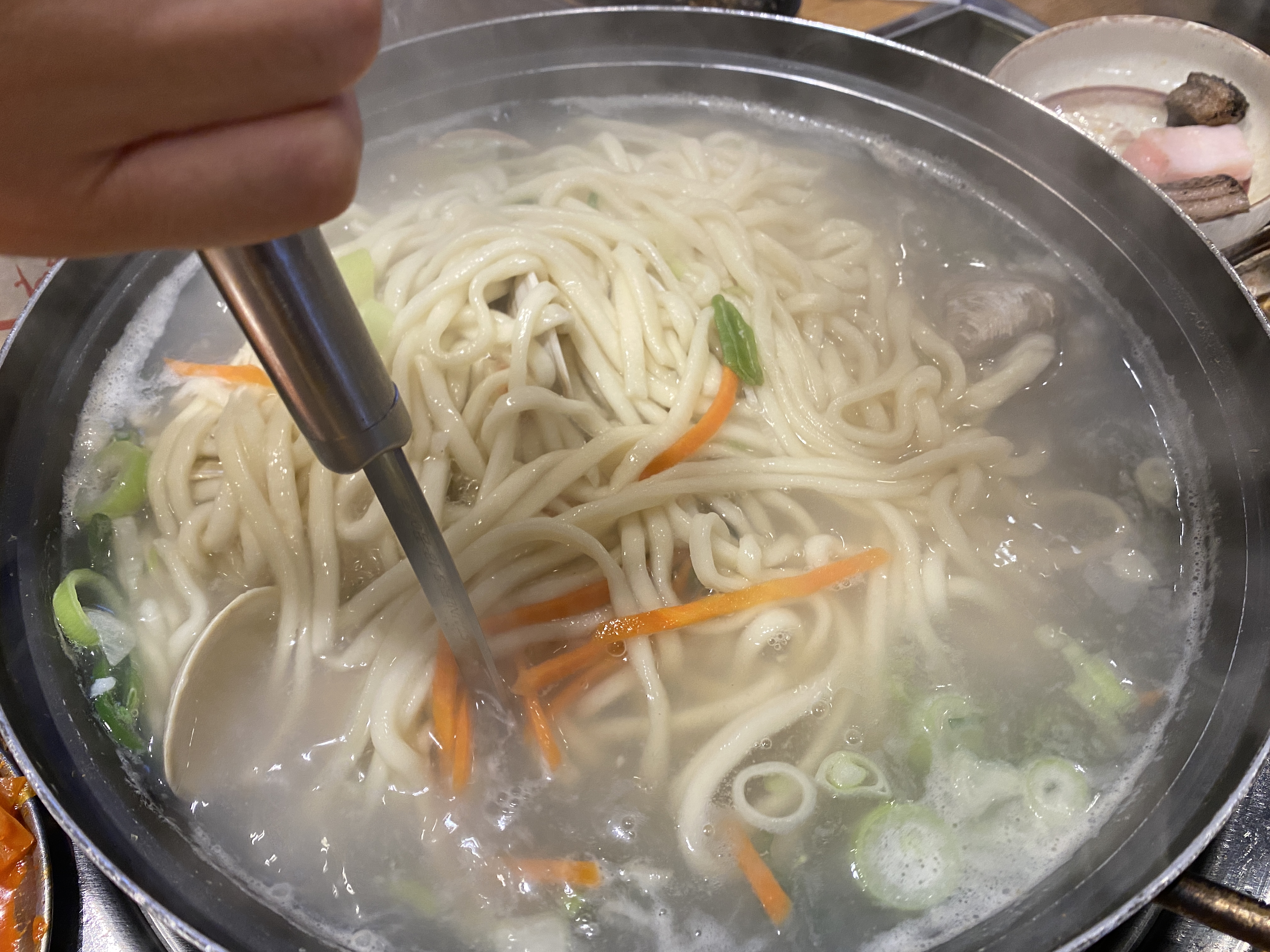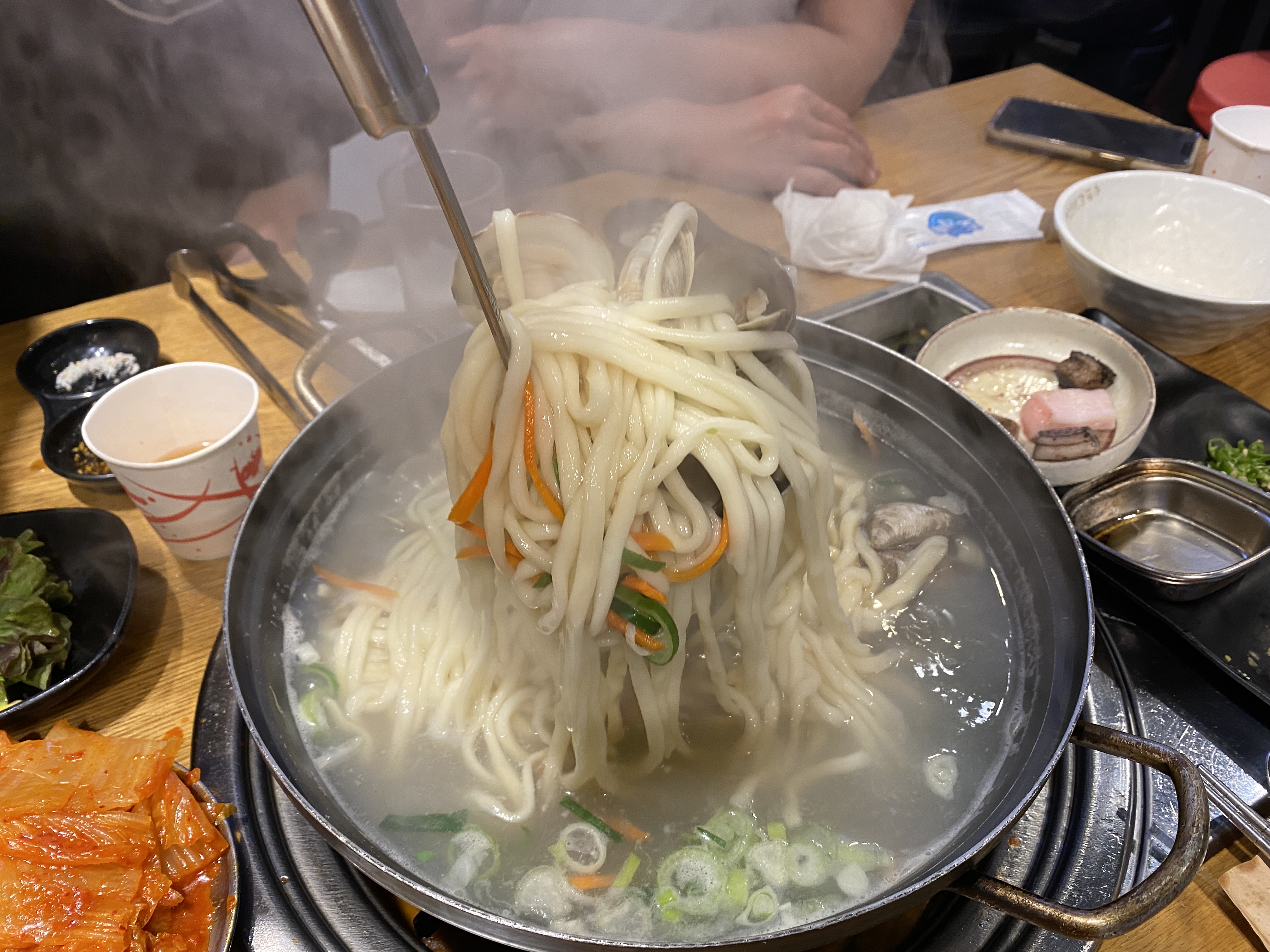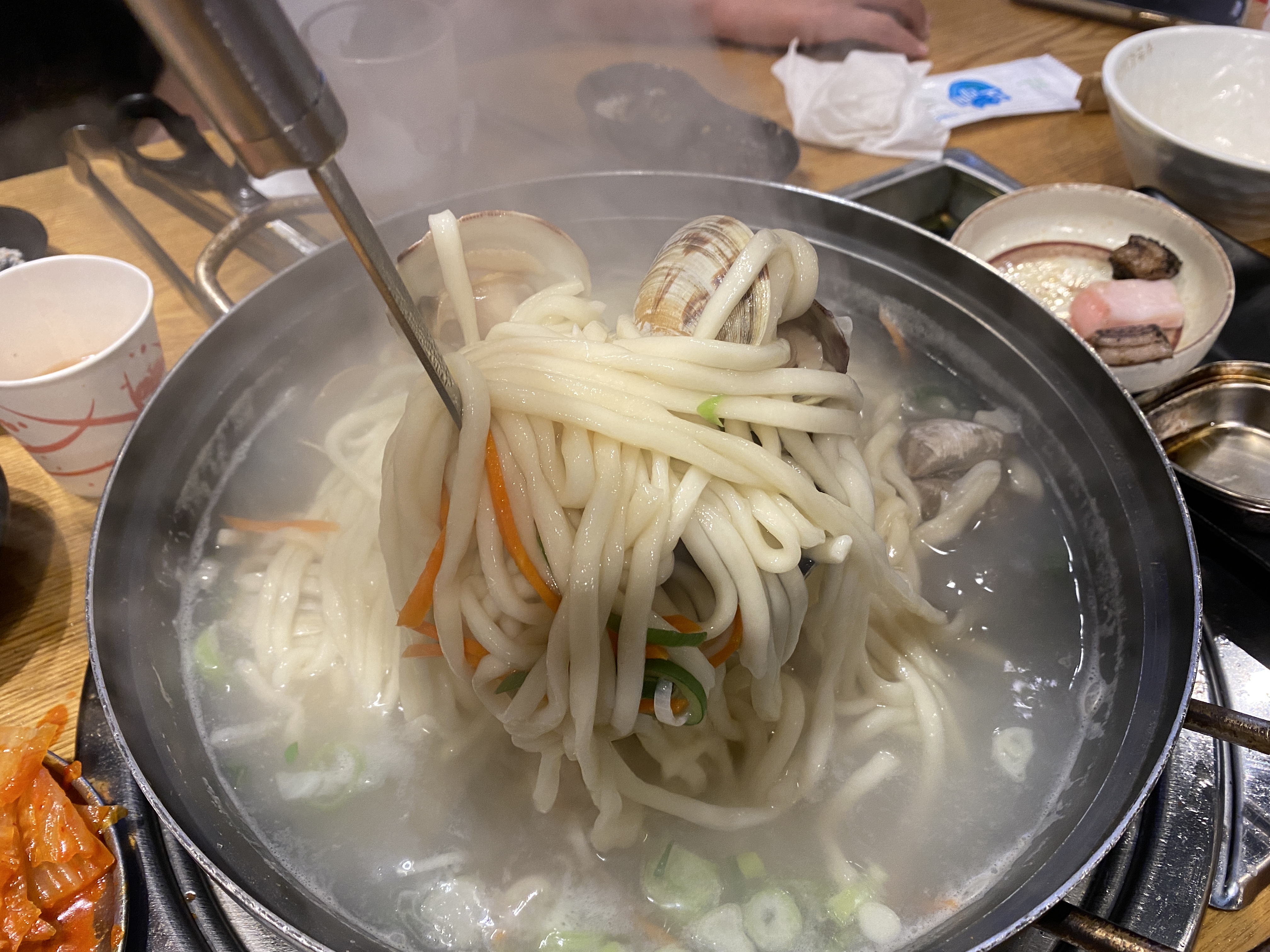 고기를 다먹고, 백합 칼국수를 주문했습니다.