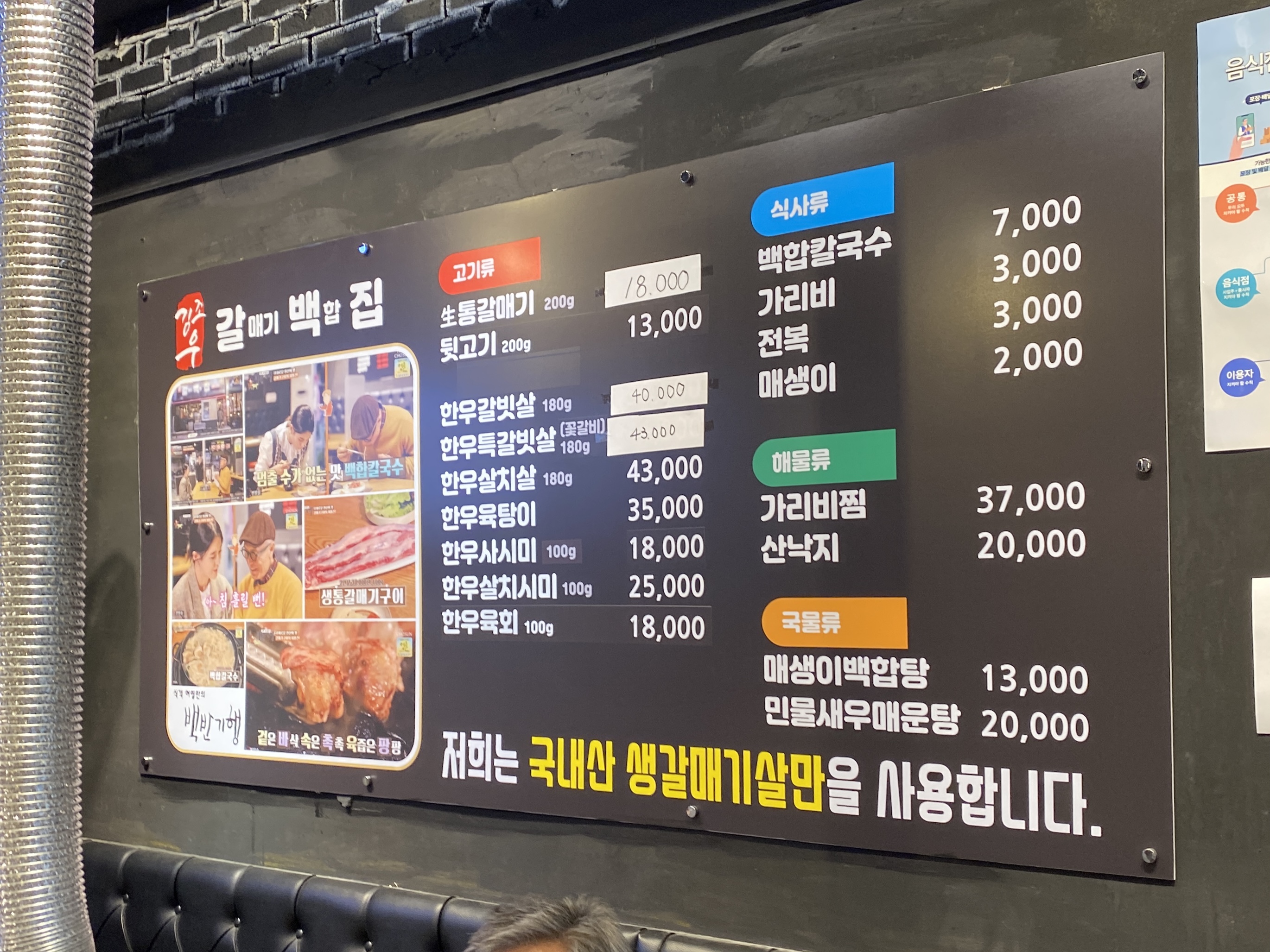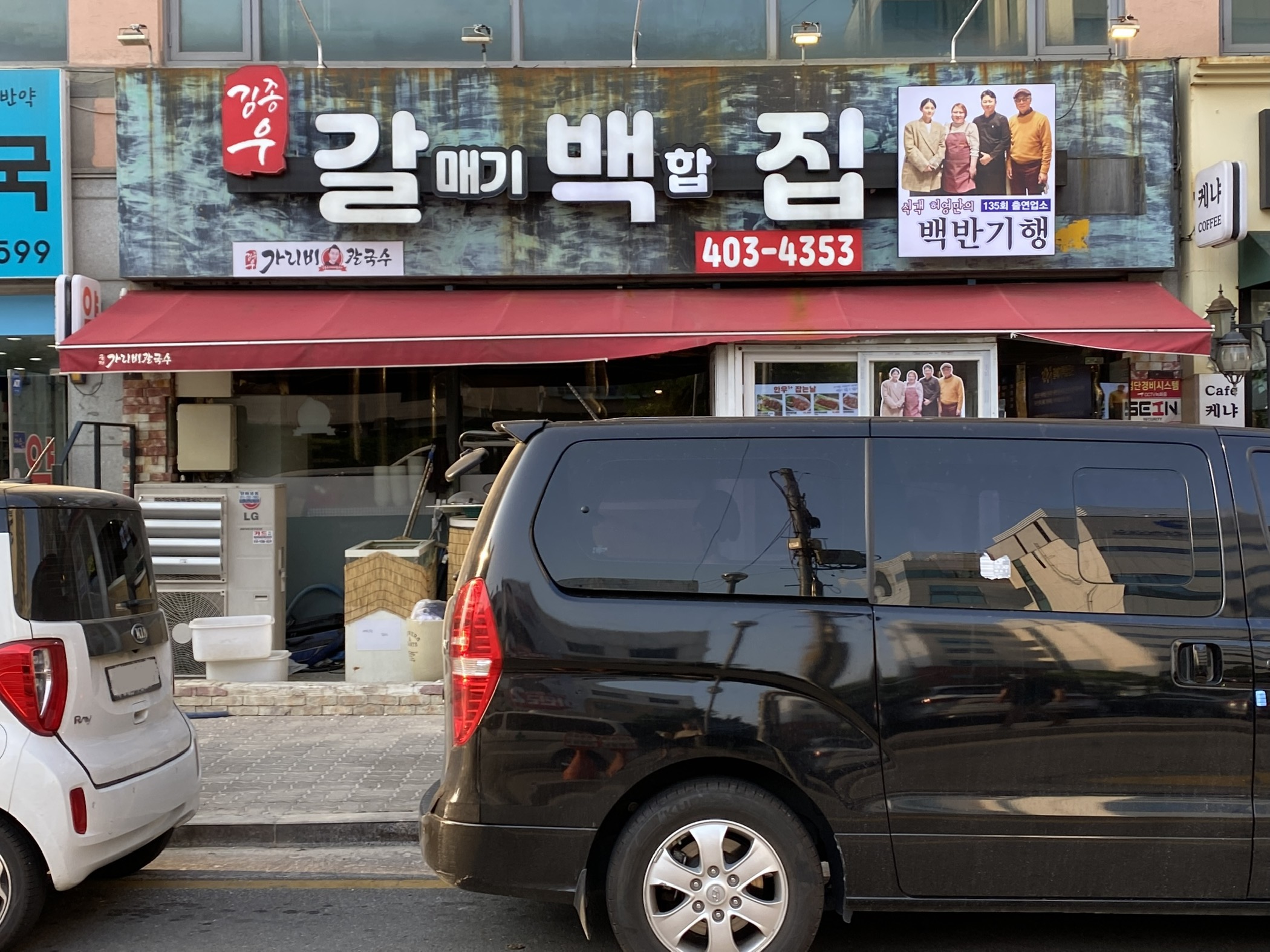 갈백집은 갈매기살을 통으로 구워주는 것으로도 유명하지만, 백합칼국수가 또 엄청난 묘미라고 합니다.