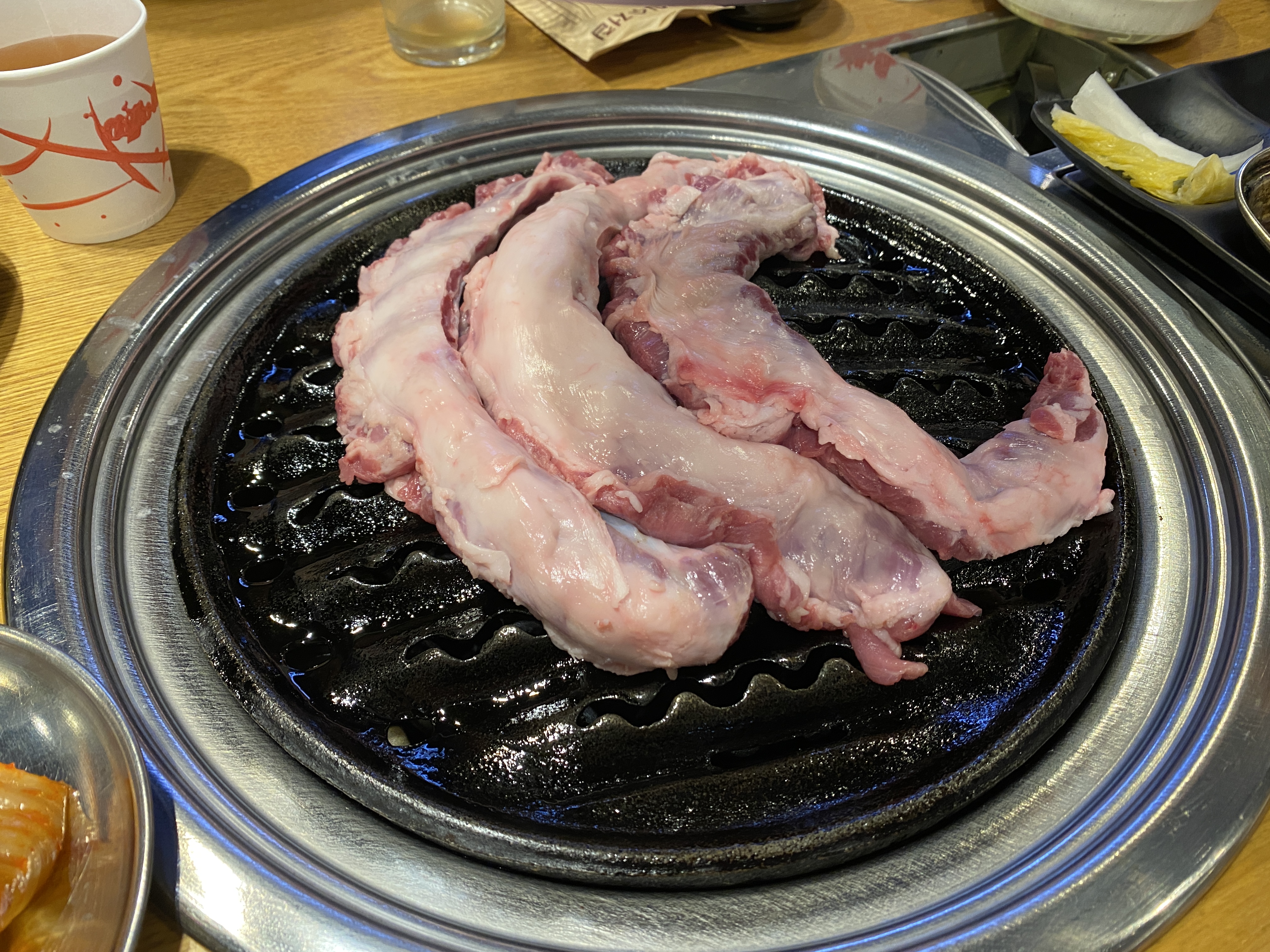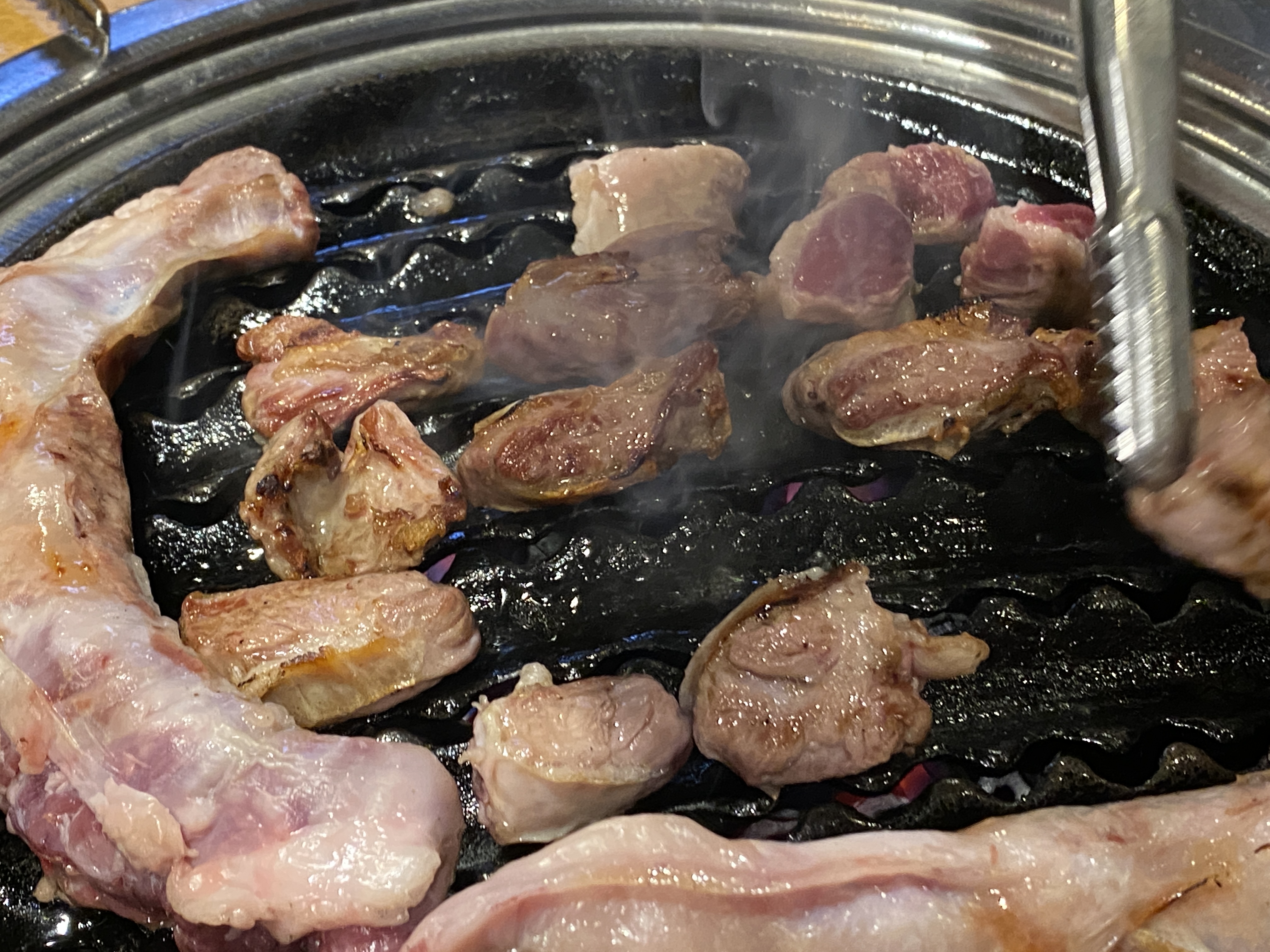 드디어 불판에 불을 넣고, 통갈매기살이 불판에 올라갔습니다.