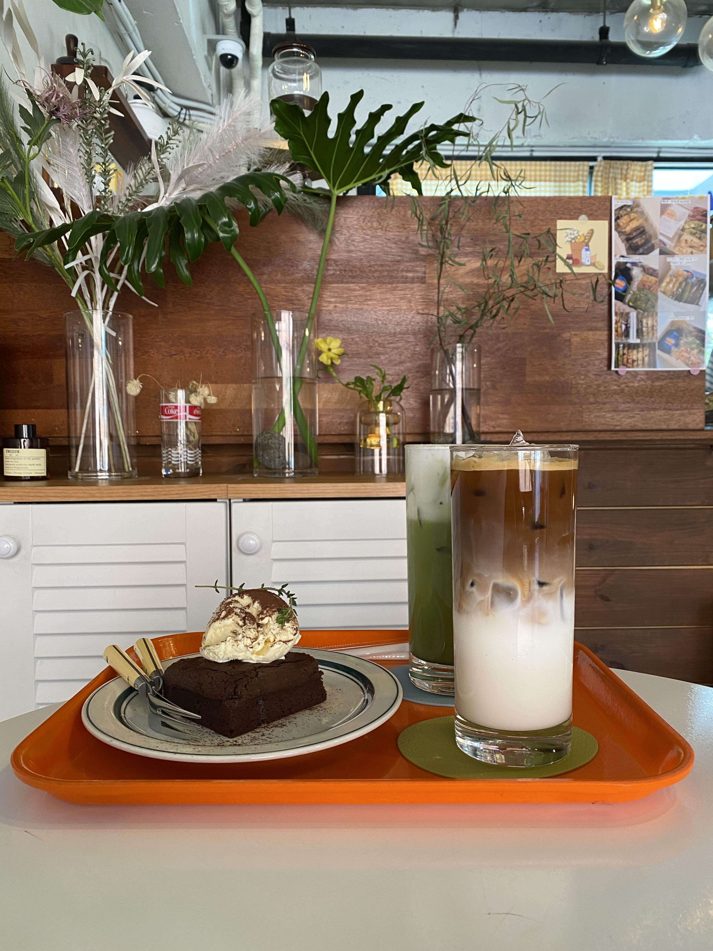그린티 라떼, 카페라떼, 브라우니 아이스크림.