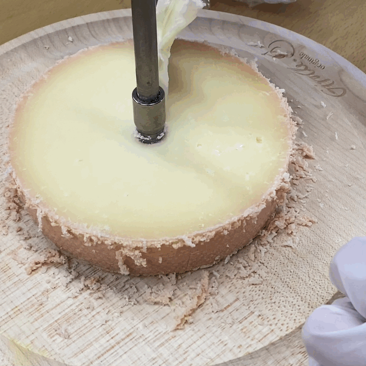 원래 테트 드 무안이라는 치즈는 요런 꽃🌼모양이 아닌 원통형으로 생긴 치즈입니다.