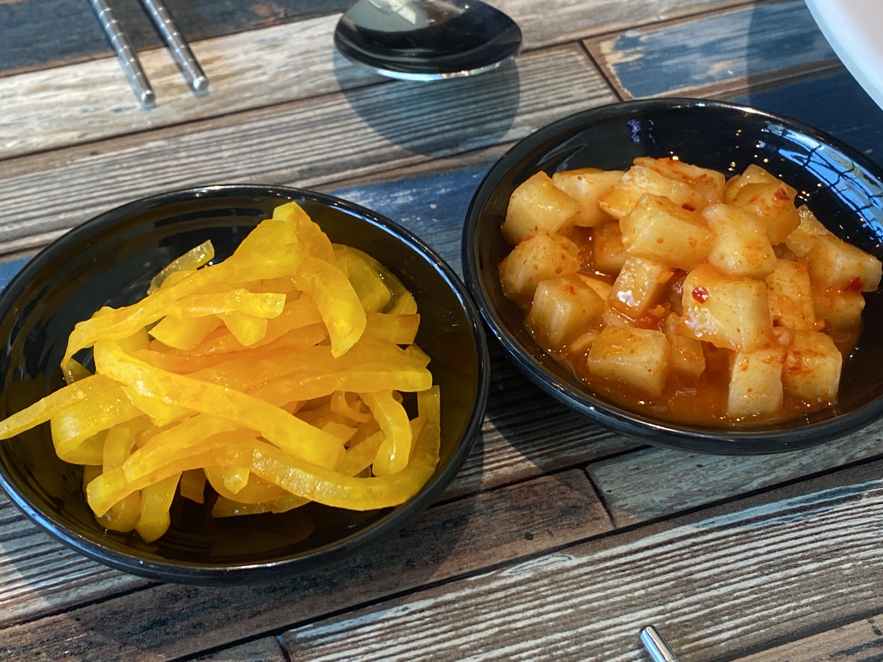 단무지와 깍두기가 나왔어요.