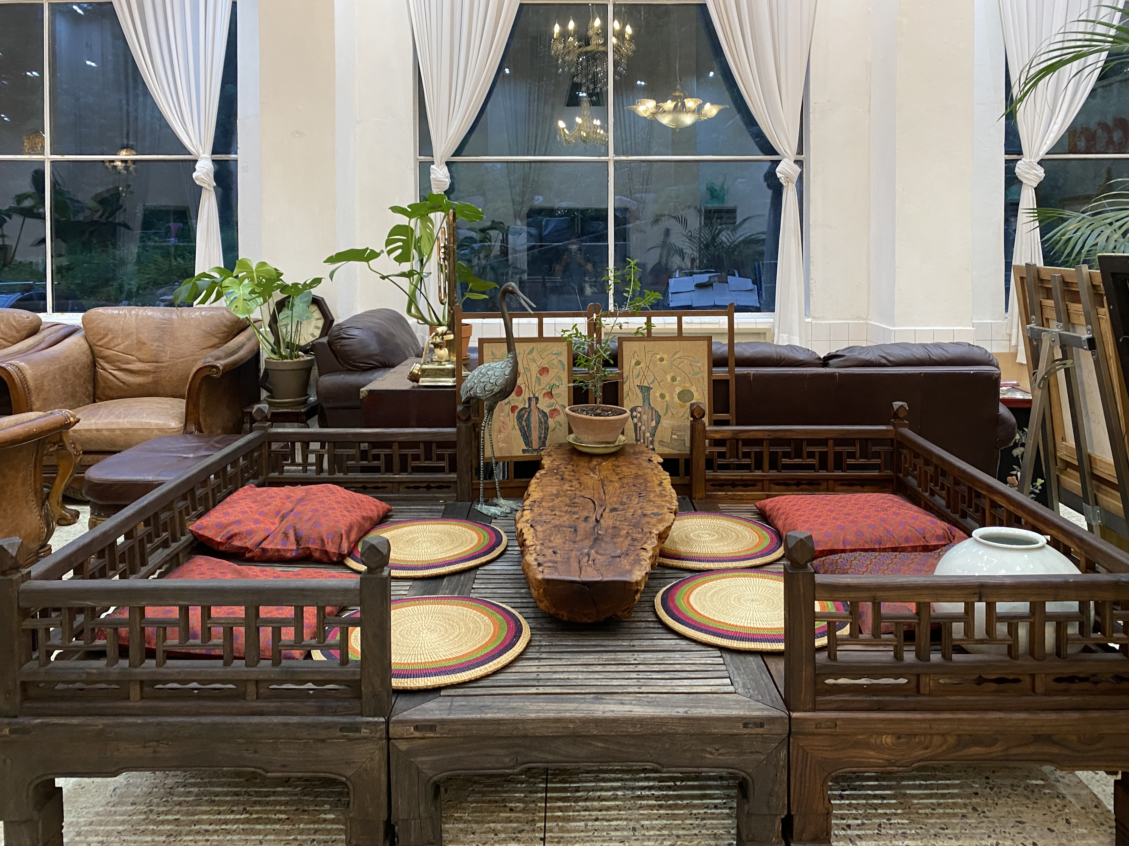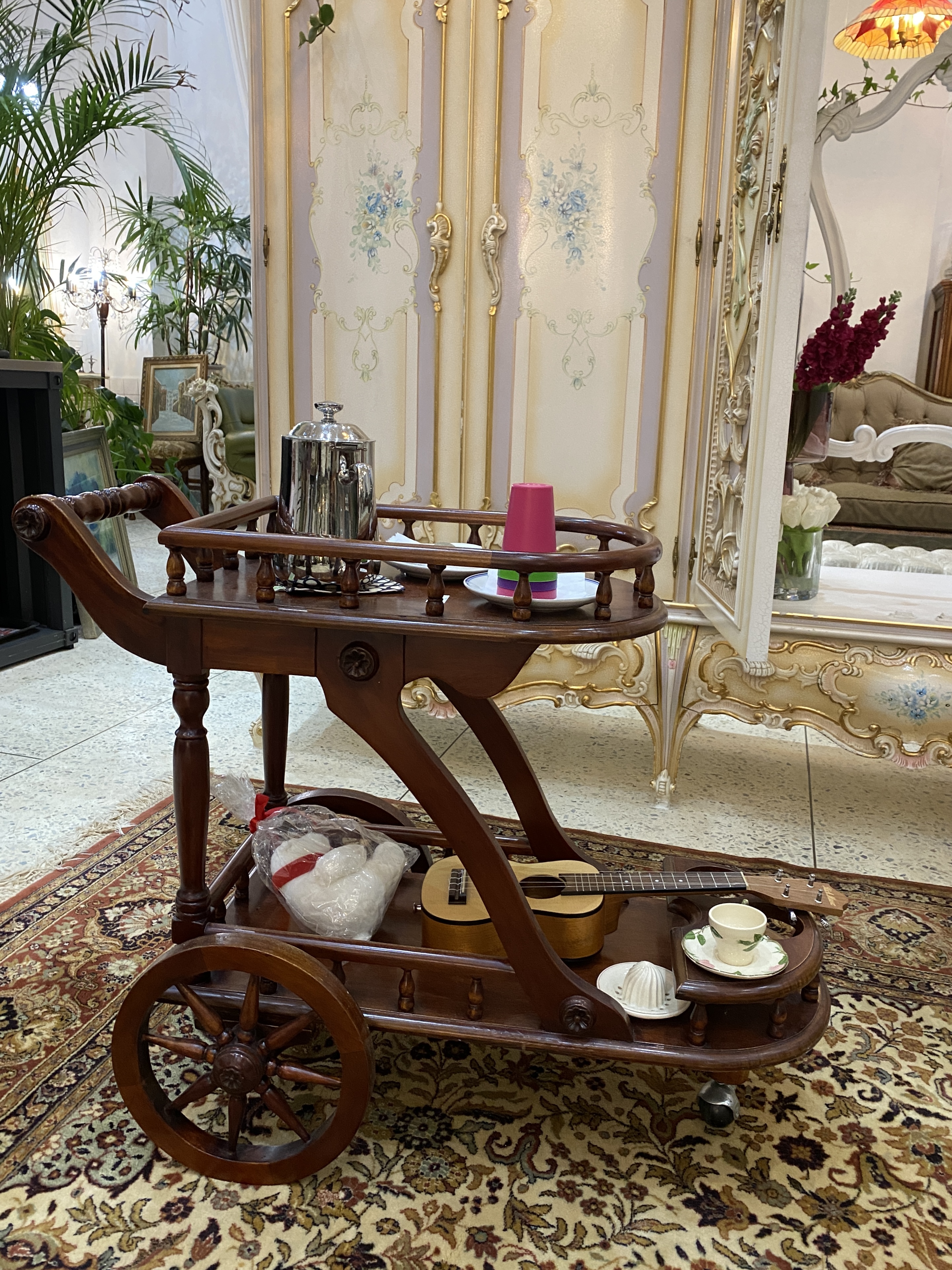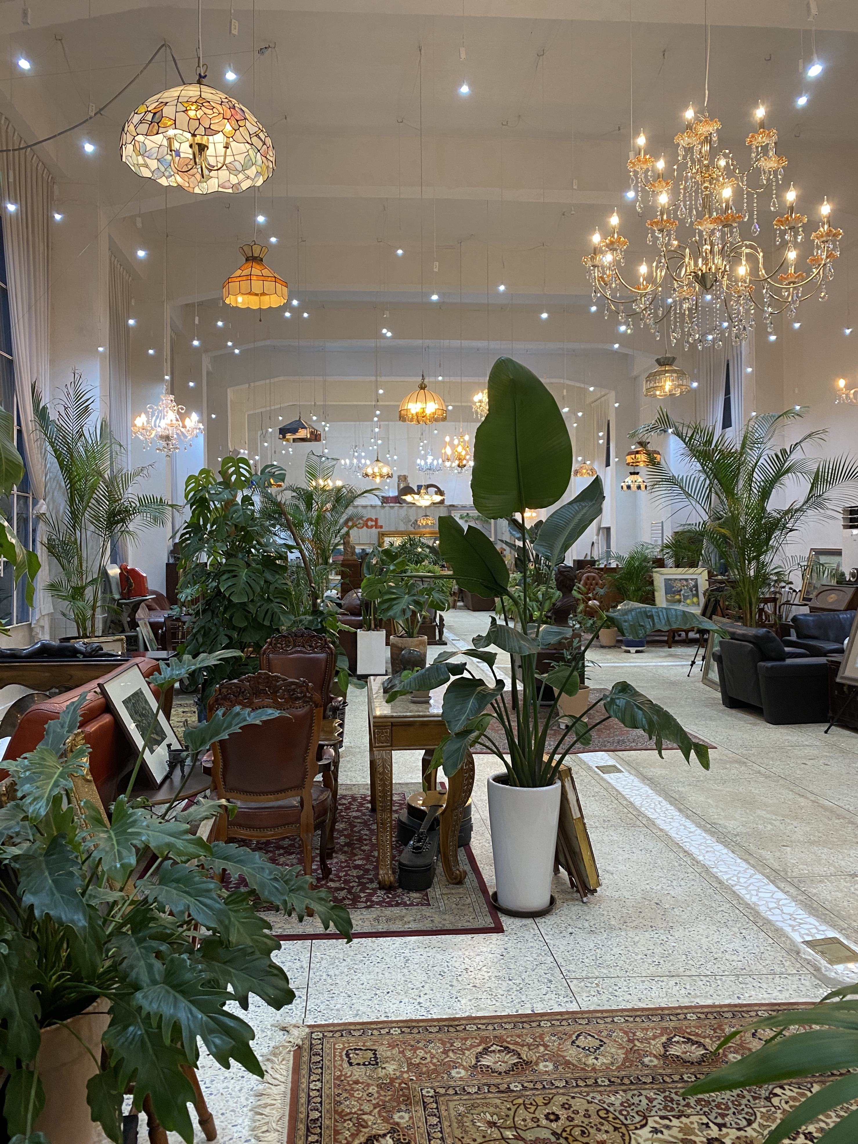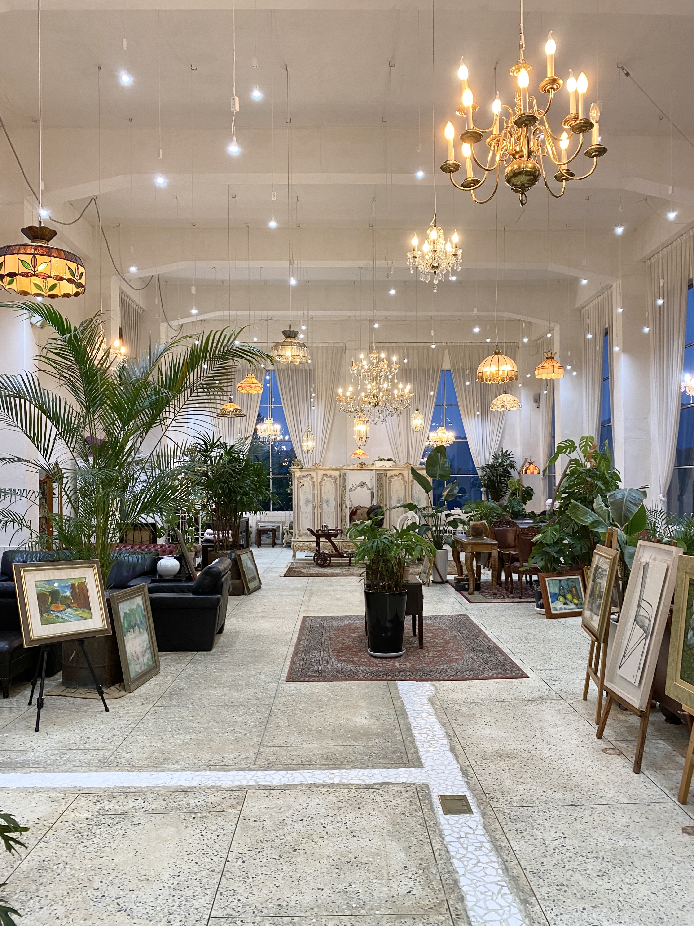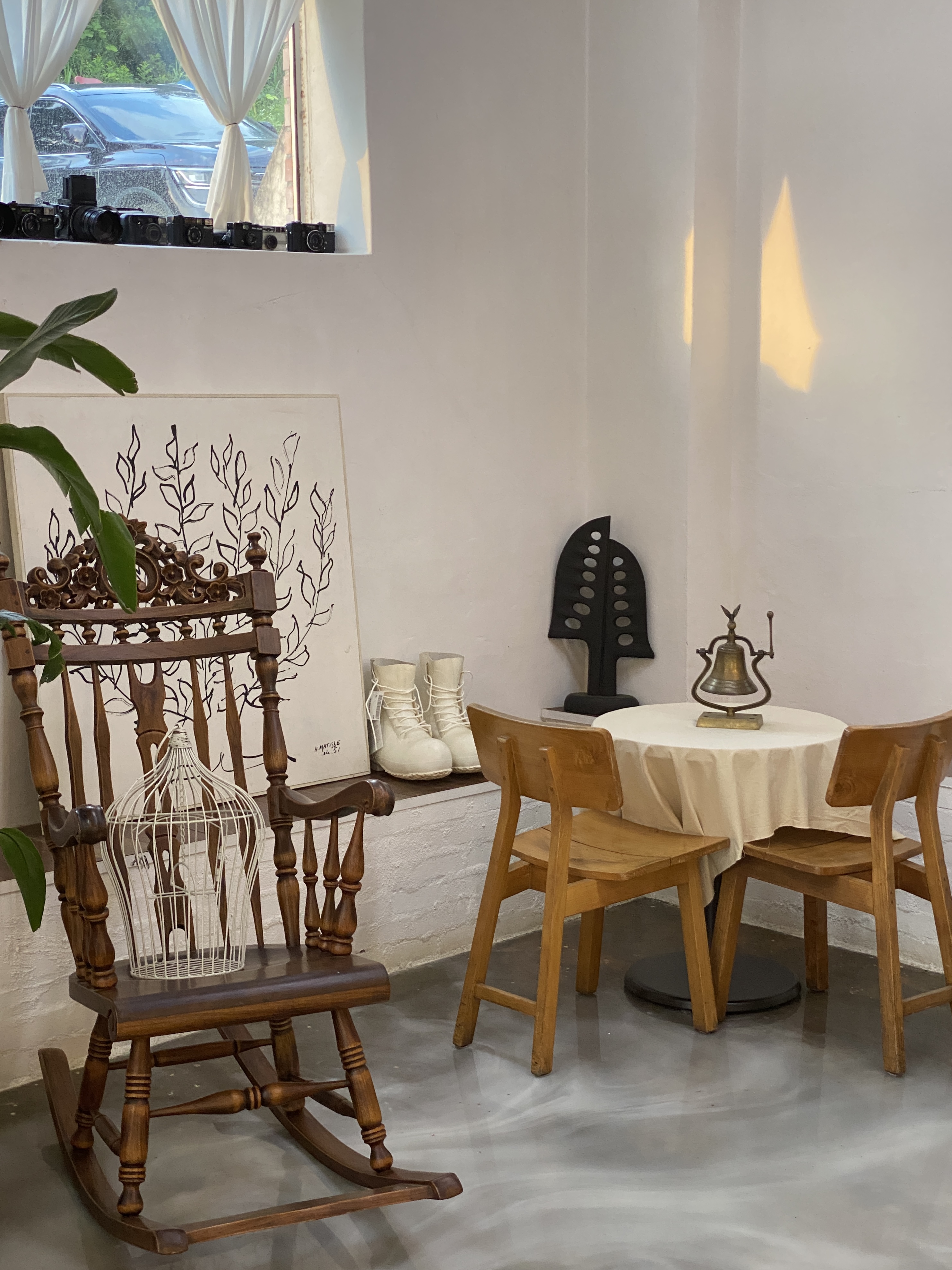 카페 내부가 골동품과 식물로 가득했고,