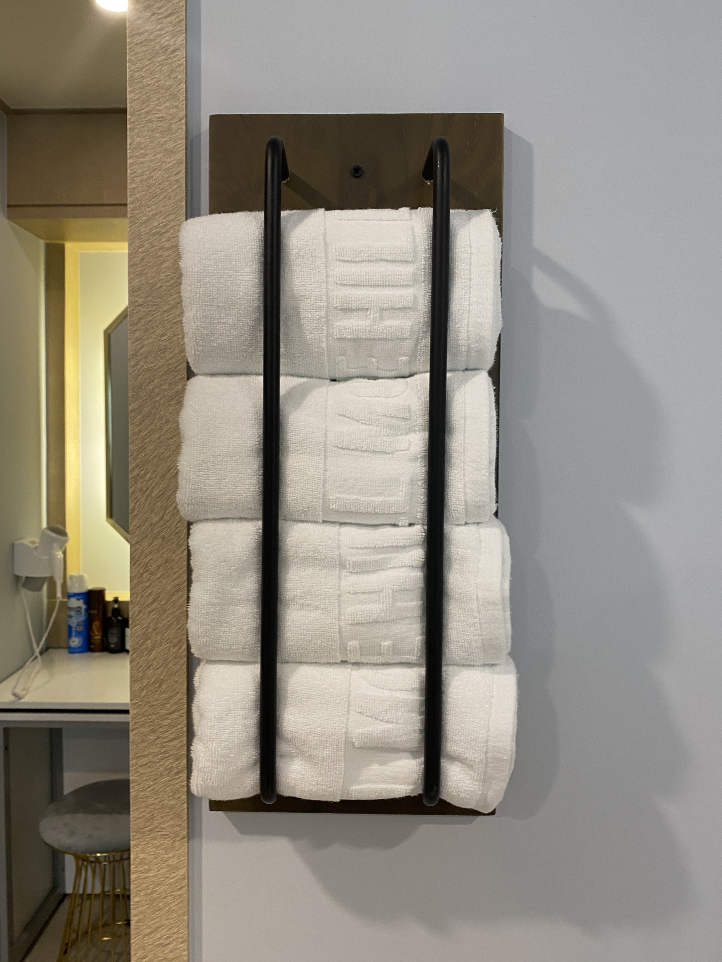 한쪽 벽에는 수건이 예쁘게 걸려있었습니다.