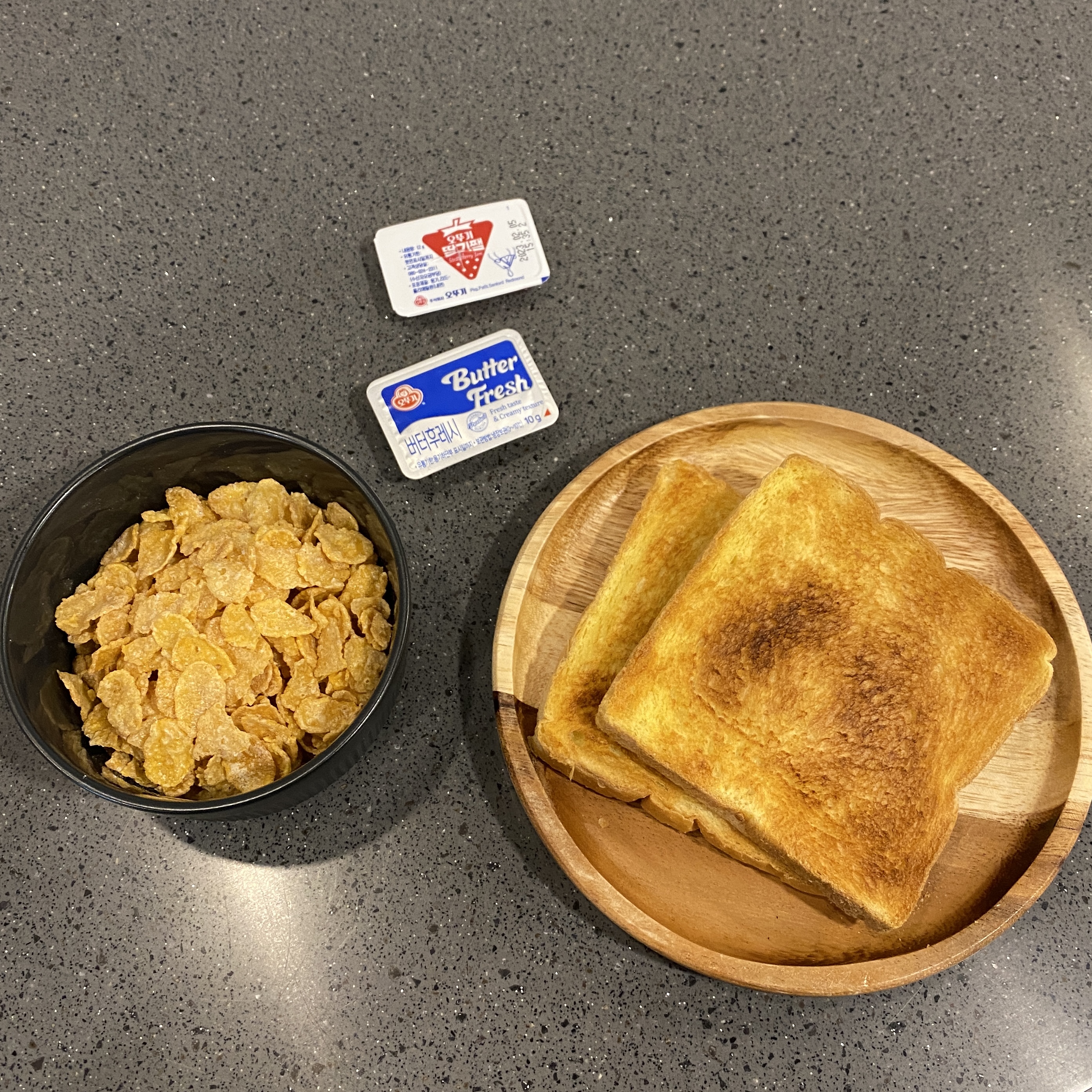 토스트와 씨리얼 한그릇만 간단히 먹었답니다.