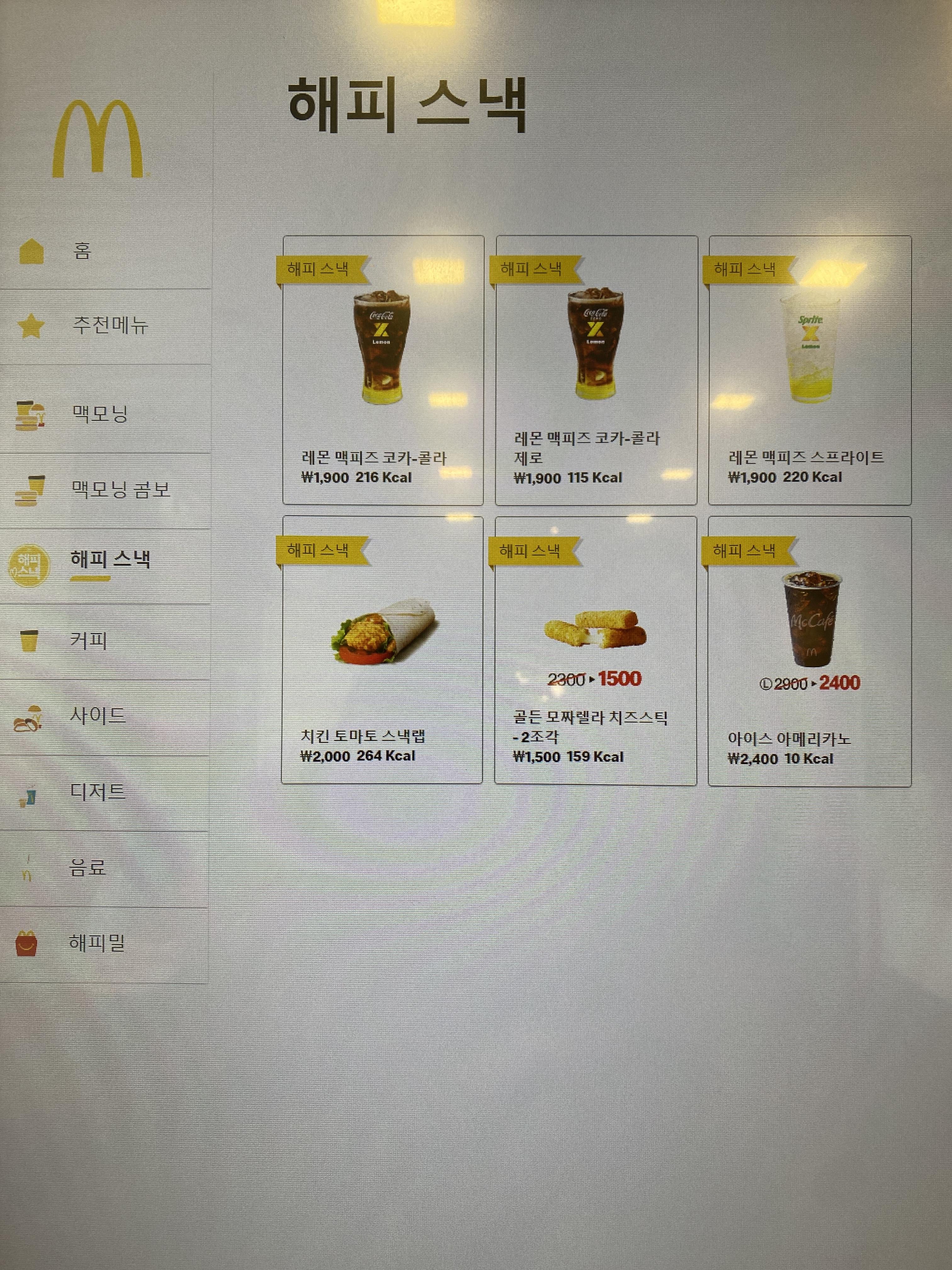 어린이들을 위한 해피밀 메뉴도 있네요!
