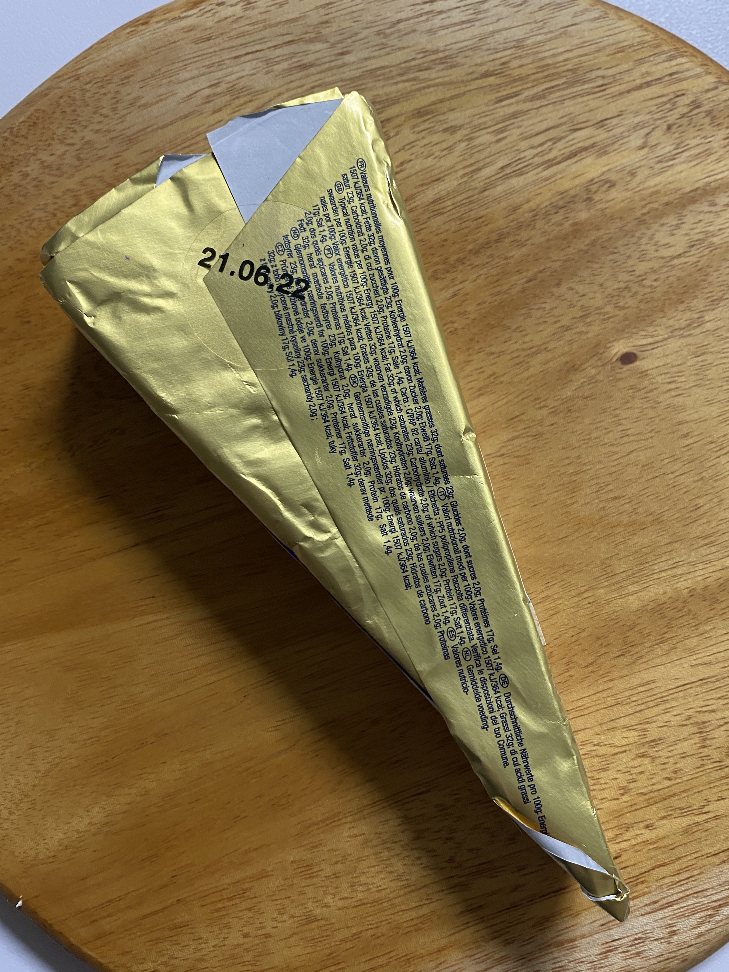 고급진 금색포장지를 가지고 있는 치즈에요.