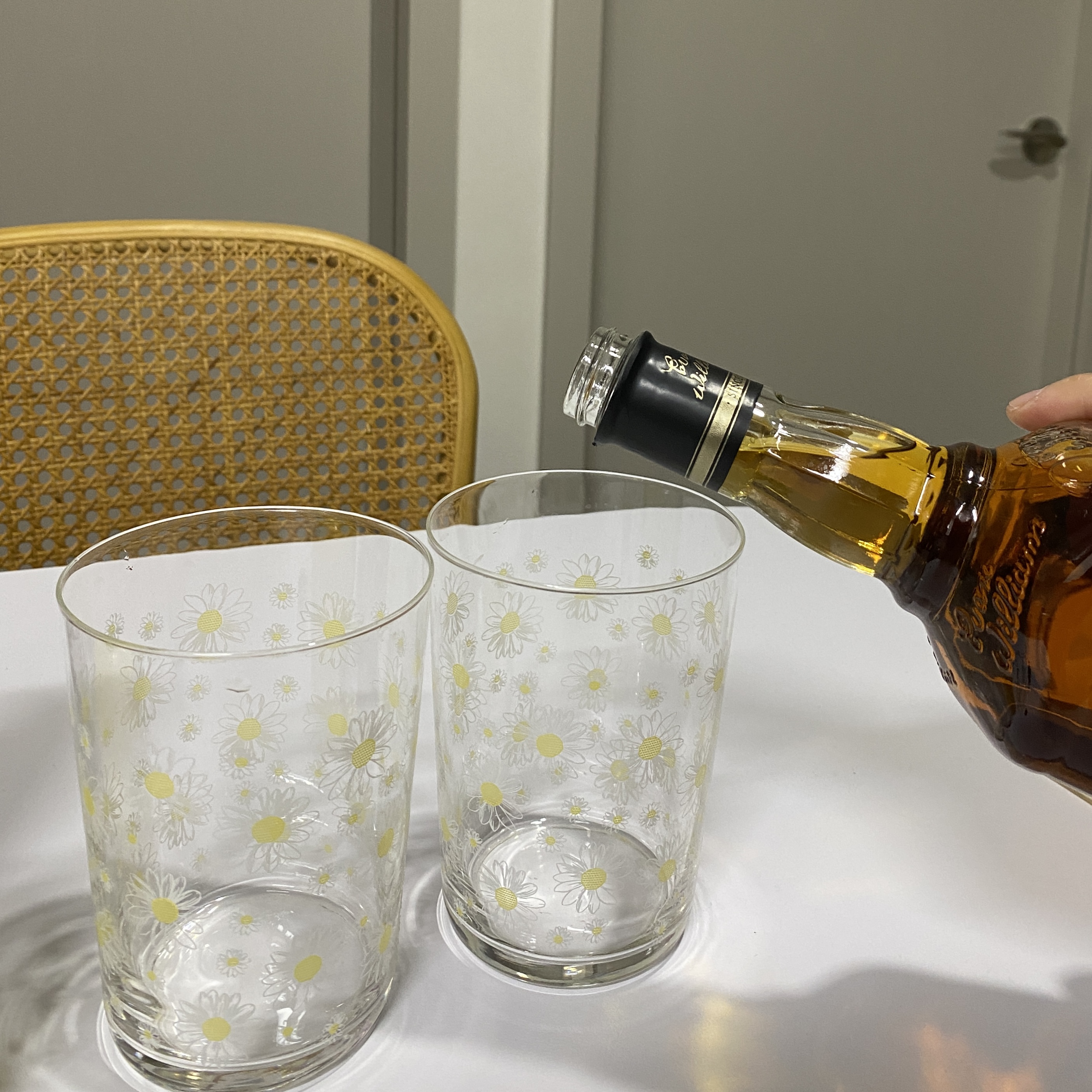 먼저 잔에 적당한 양의 위스키를 따라줍니다.