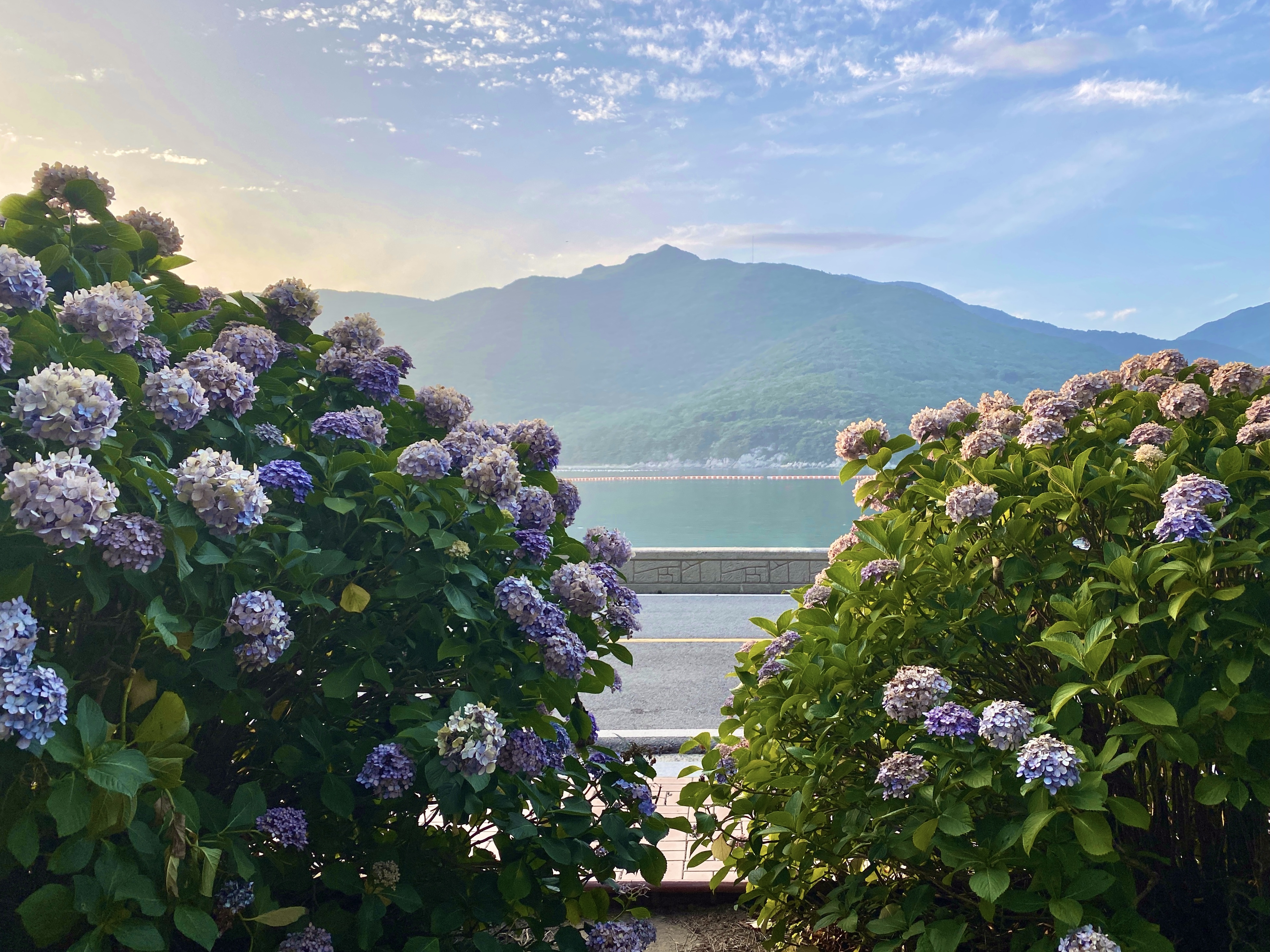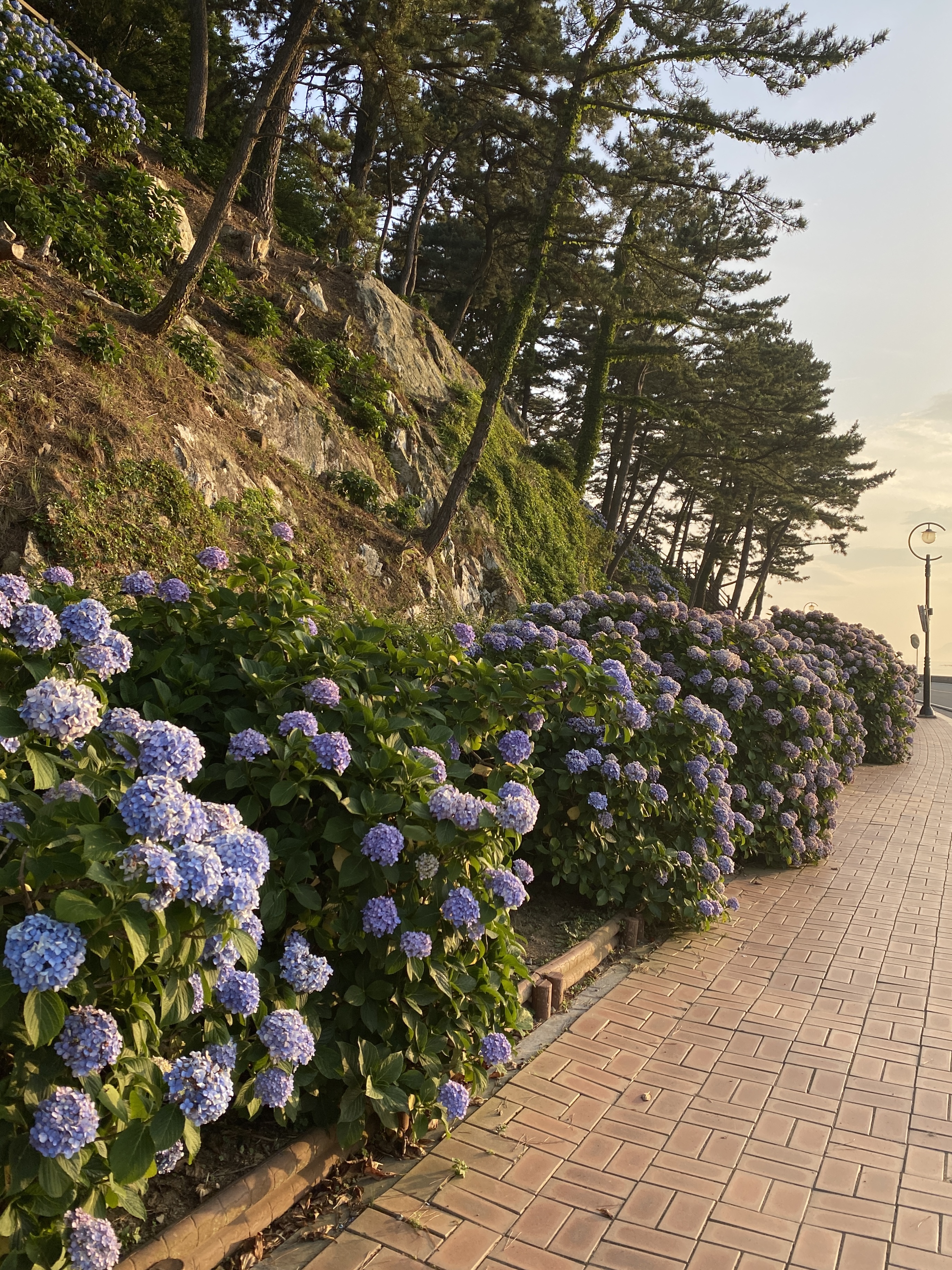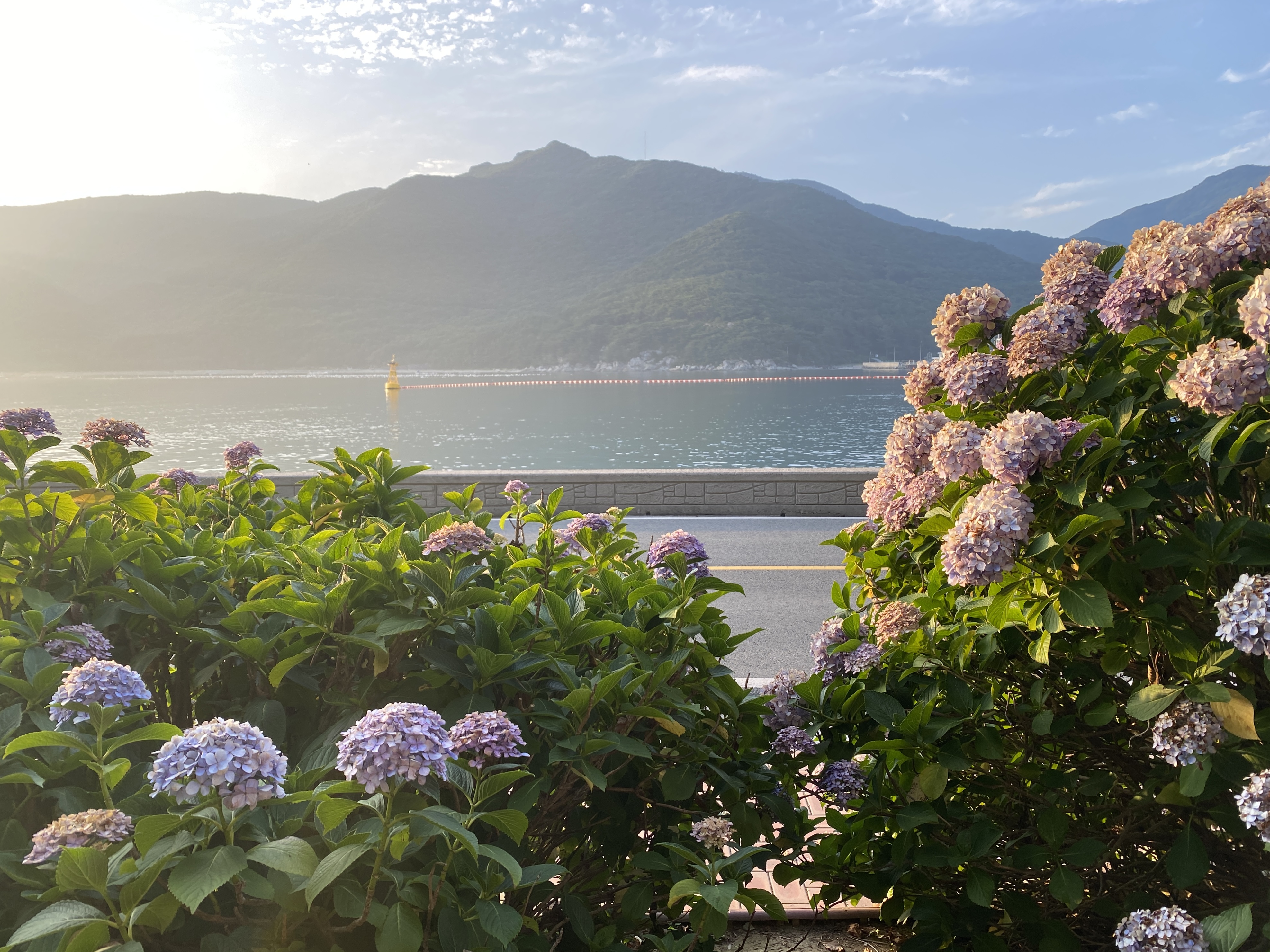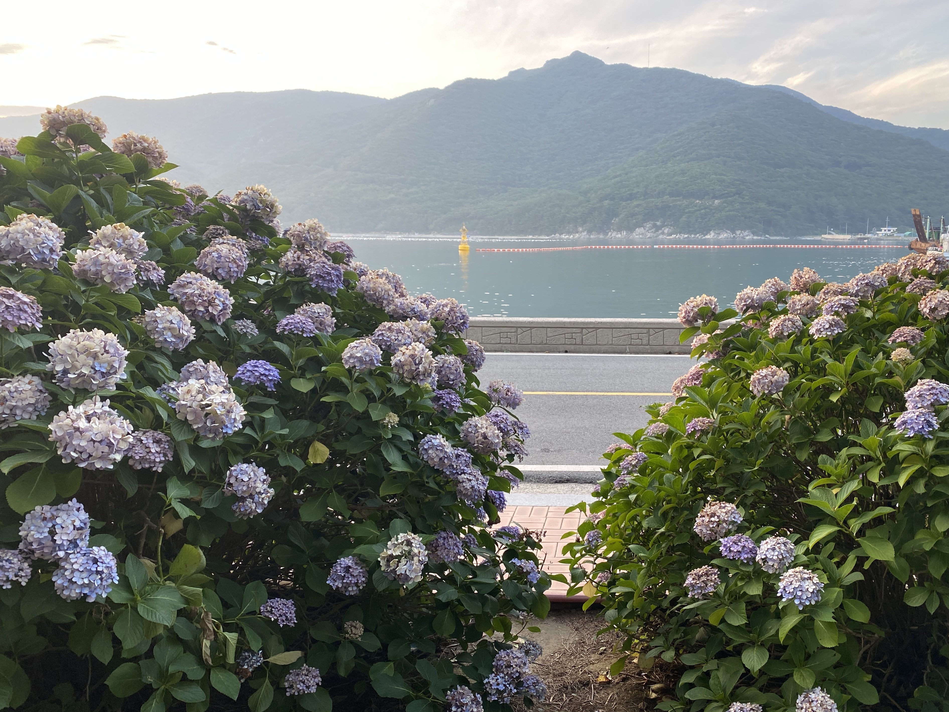 저는 이정도도 수국이 참 많이 피었다고 생각했는데, 이 정도도 많이 핀 것이 아니라고 하네요. 원래는 더 풍성하고 더 많이 핀다고 합니다. 내년에는 비가 많이 와서 수국동산을 다시 방문해보고 싶어요. 저구항 수국축제는 바다 바로 옆길에 수국이 피어있어서 걷기만해도 너무 힐링되더라구요.