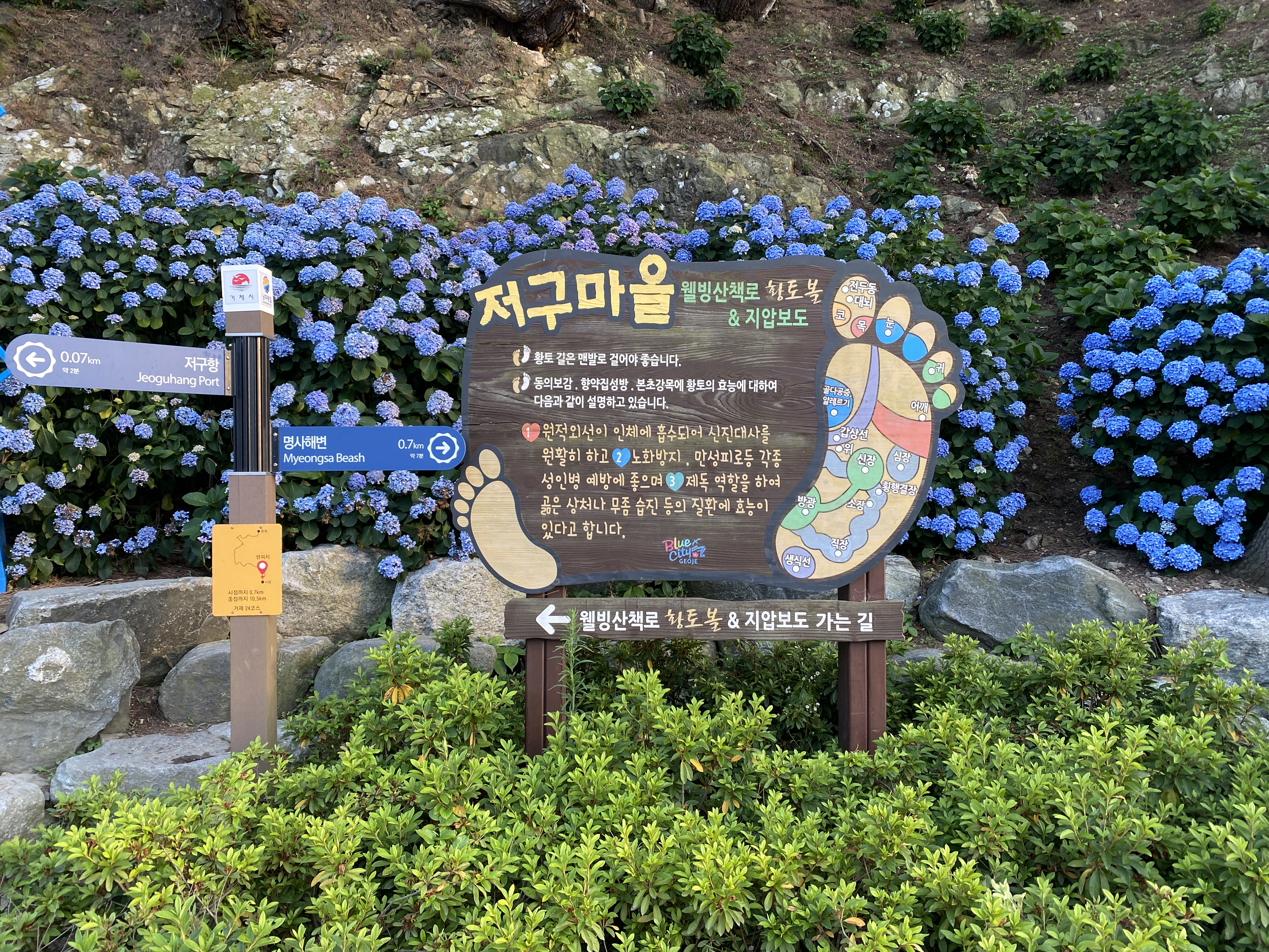 저구항 수국동산에는 웰빙산책로도 있구요, 곳곳에 포토스팟도 아주 많았어요. 저는 해가 지기 전에 수국동산을 다 돌아보고 싶어서 웰빙산책로는 생략 했습니다. 수국사이에 생각보다 모기가 많아서 천천히 사진찍으며 돌아보기가 힘들더라구요. 사진찍으려고 서있다가 발에 모기를 많이 물렸어요 🥲