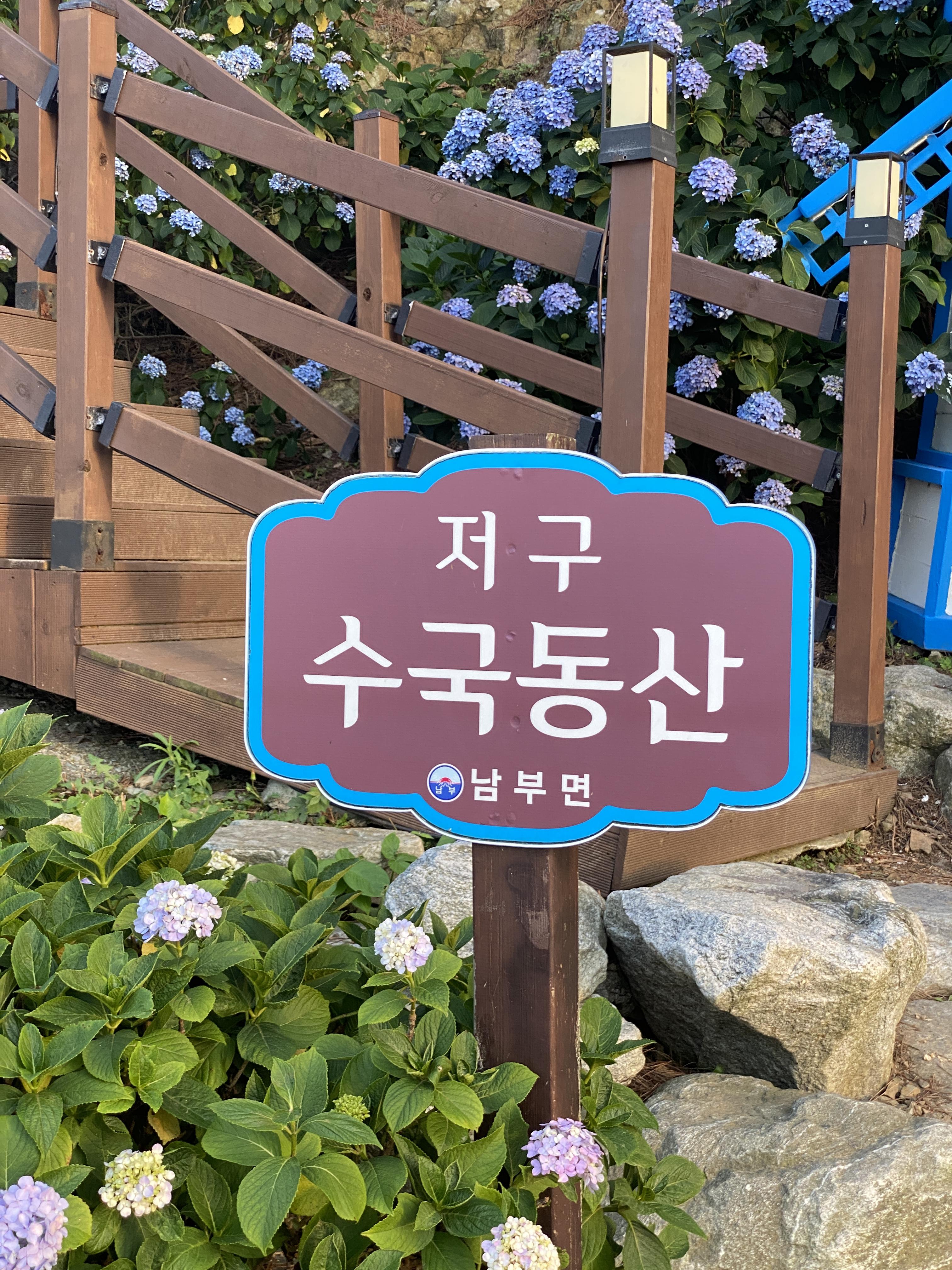주차를 하고 나오면 바로 저구항 수국동산이에요. 올해는 비가 많이 오지 않아서 수국이 많이 안핀 편이라고 하더라구요. 하지만, 저는 수국을 처음보는거라 이 정도도 너무 많고 예쁘고 신기했어요 😆