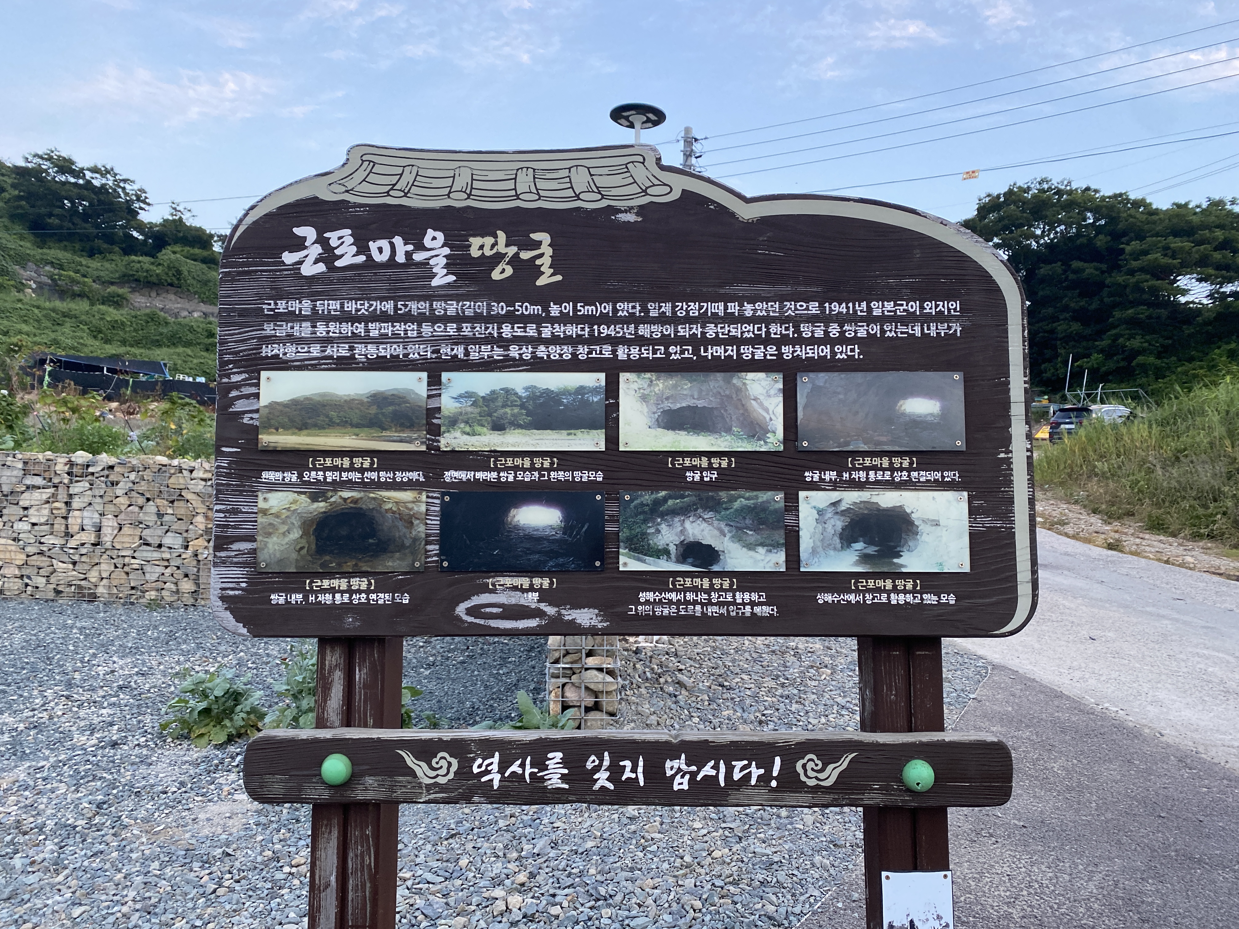 근포마을에 있는 땅굴들은 일제강점기때 파놓은 굴 이라고 해요.