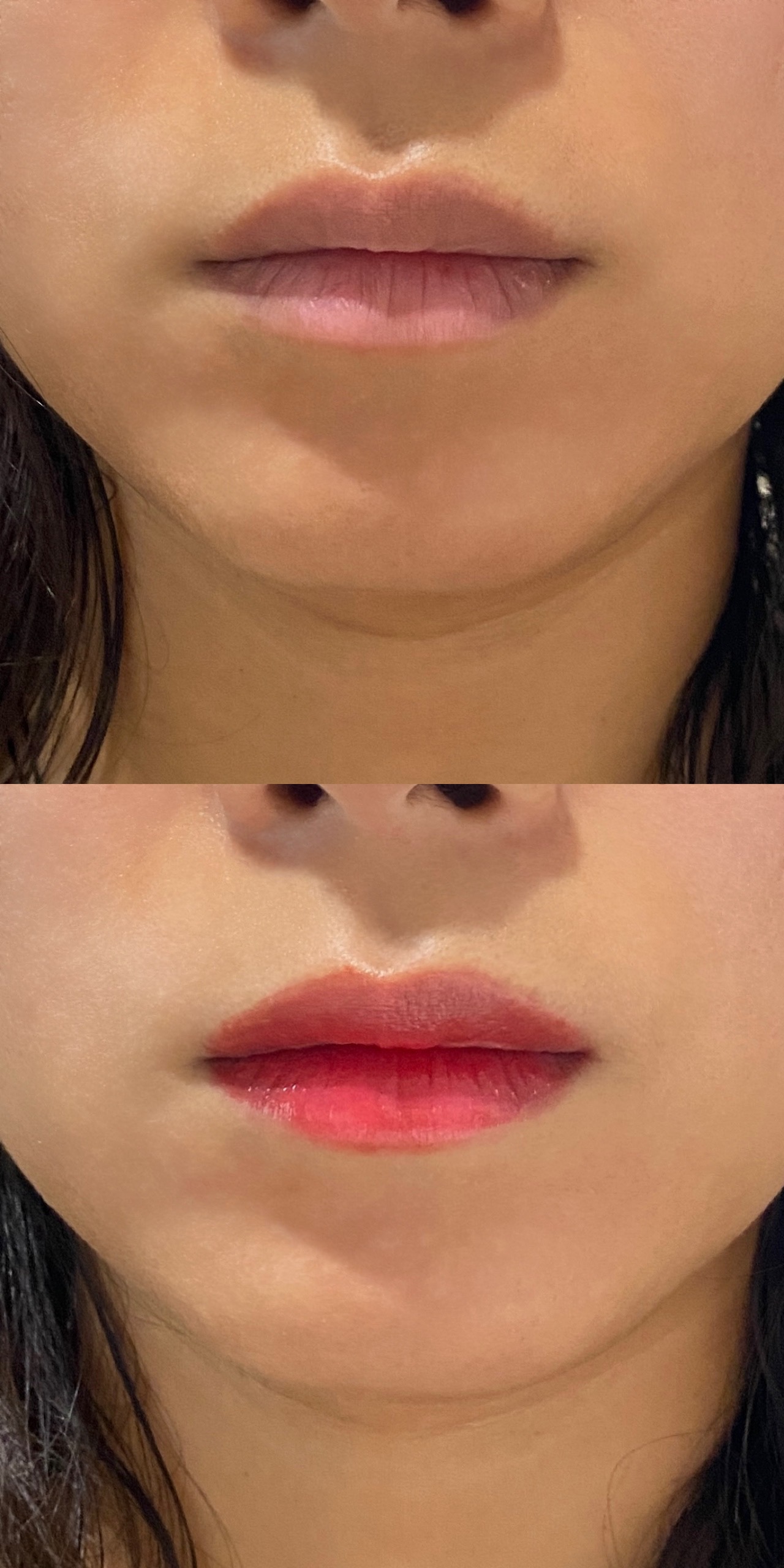 확실히 1회로 연하게 발랐을 때보다는, 2회로 찐~ 하게 바르는게 얼굴이 더 환해보였어요. 까만 피부임에도 불구하고 제 퍼스널컬러는 봄웜 브라이트인데요, 레드 빛이 조금 더 들어갔으면 저에게 정말 완벽하게 어울리는 색상일 것 같았어요.