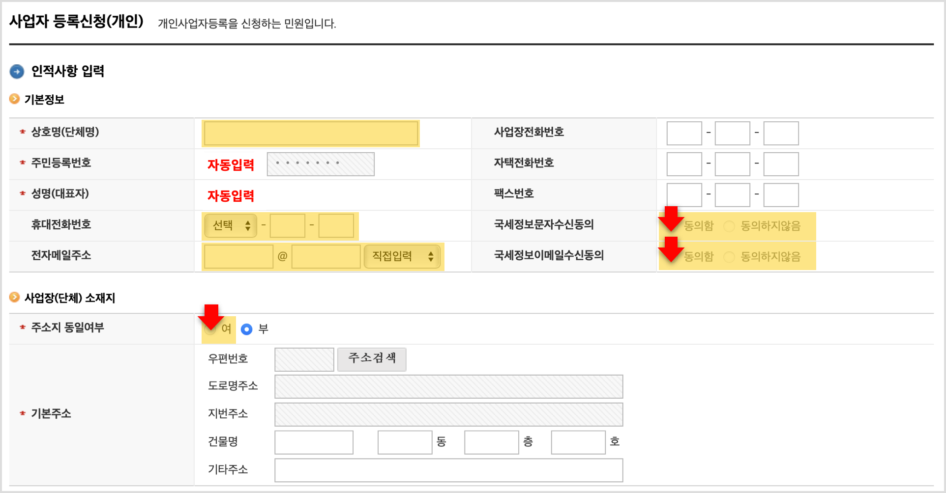 사업장 소재지는 주소지와 동일하다고 체크했어요.