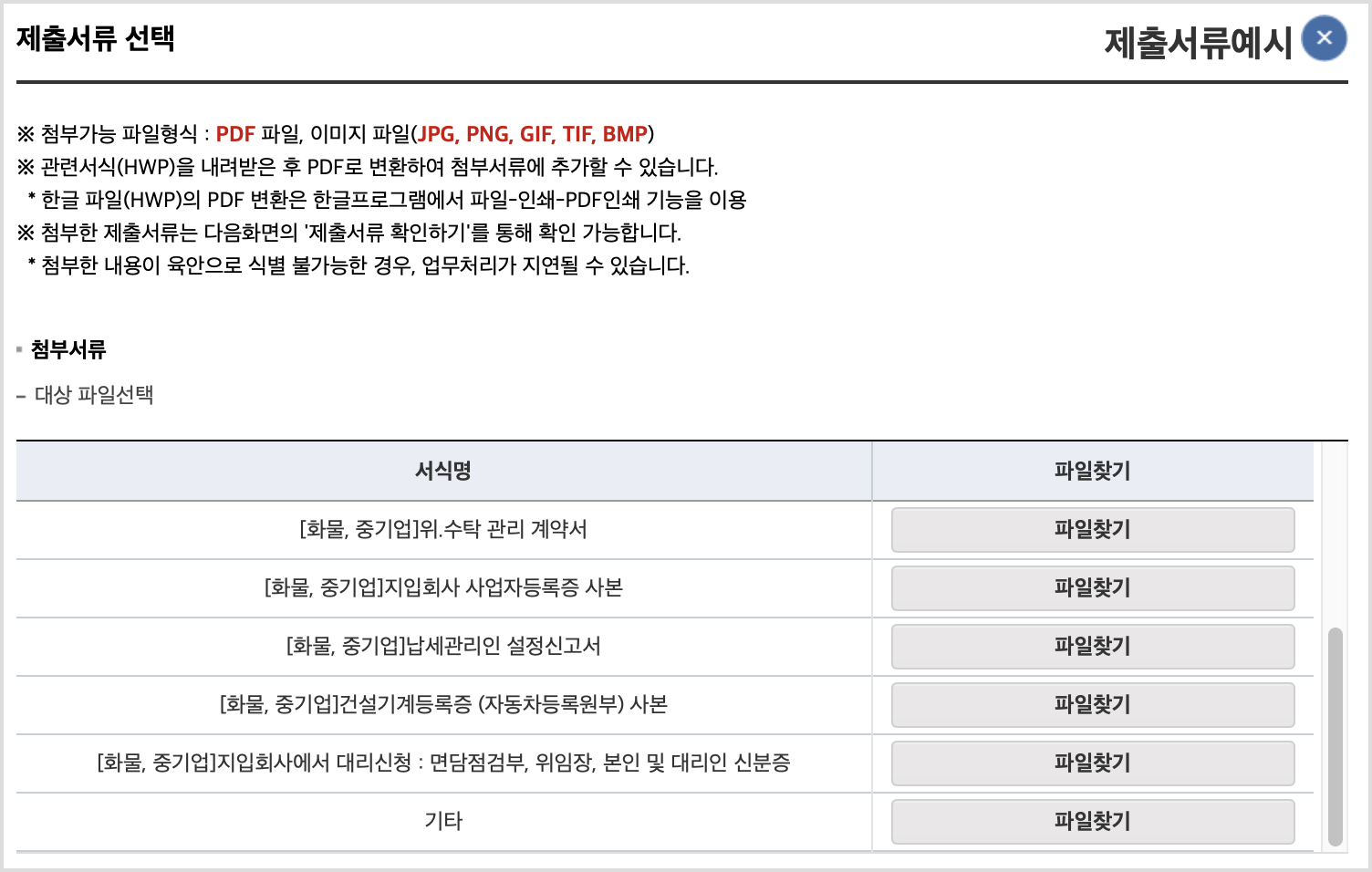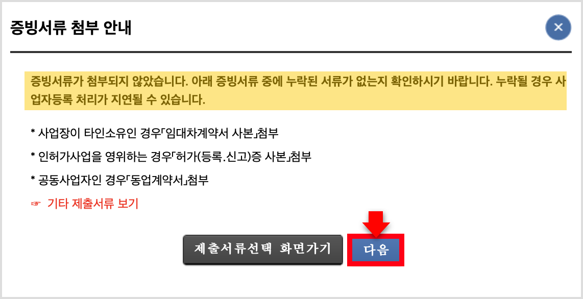 제출서류는 해당없으니 제출하지않고 다음으로 넘기면 됩니다.
