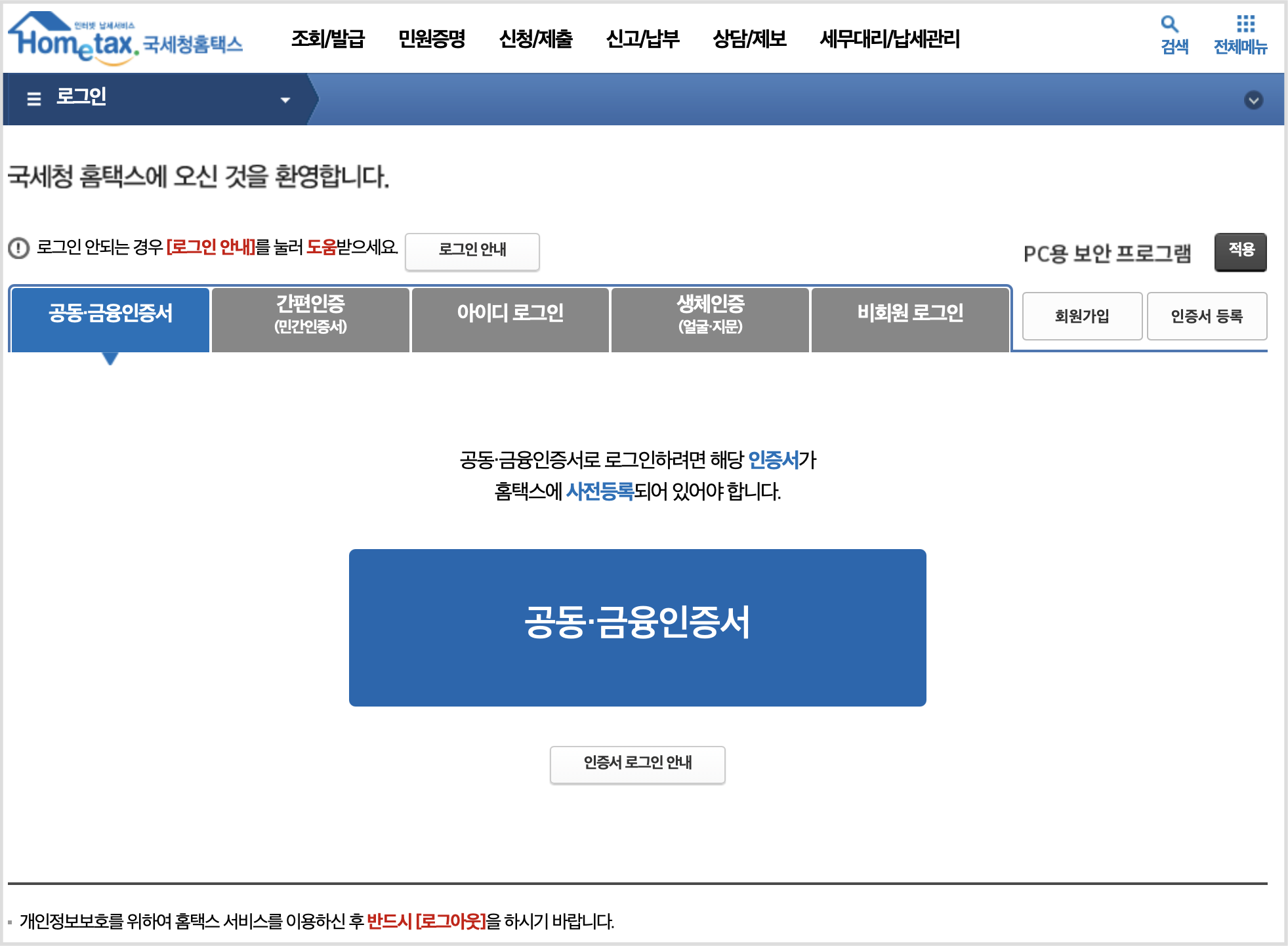 먼저 홈텍스에 로그인을 해줍니다. 저는 간편인증(카카오)로 로그인을 했어요.