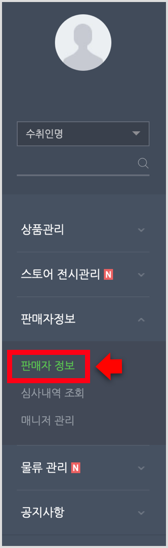 먼저 스마트스토어에 로그인 한 후, [판매자 정보]에서 [판매자 정보]를 클릭해줍니다.